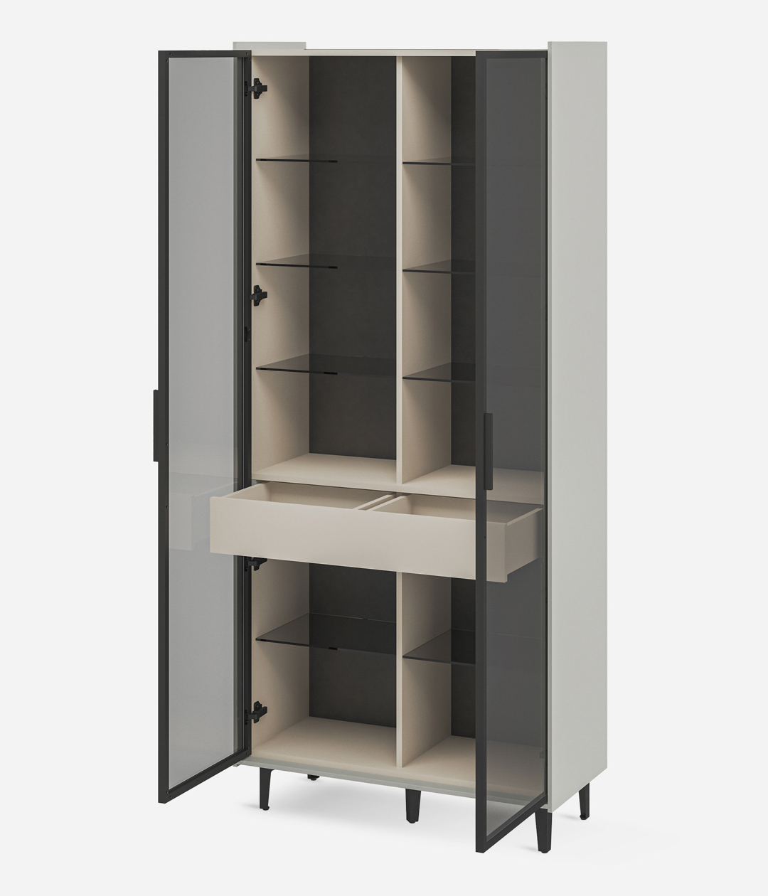 Шкаф-витрина «Модена» — это прекрасное решение для комнаты в современном стиле. Фасады со стеклом позволят хранить столовый сервиз, книги и предметы декора. Благодаря тонированному стеклу шкаф сам по себе является стильным элементом интерьера, построенного со вкусом.
