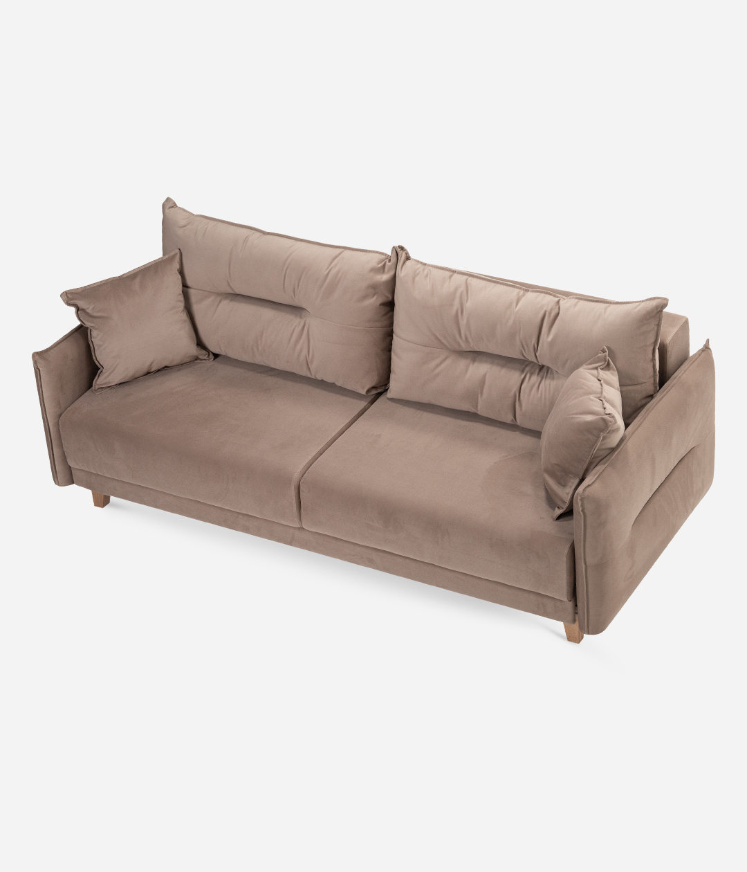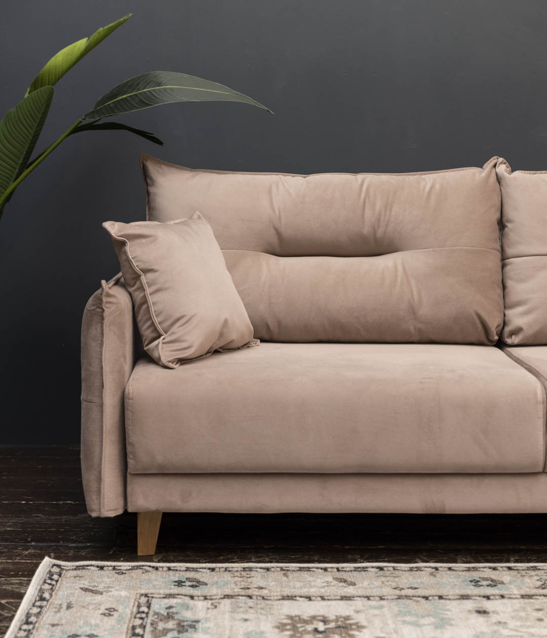 Диван Нампа станет сердцем вашего интерьера, притягивая взгляды современным дизайном и оригинальными подлокотниками и подушками. Мягкий бархатистый велюр не только приятен на ощупь, но и обладает антивандальными свойствами, легко очищается. Высокие ножки придают легкость и элегантность, создавая атмосферу уюта и стиля.