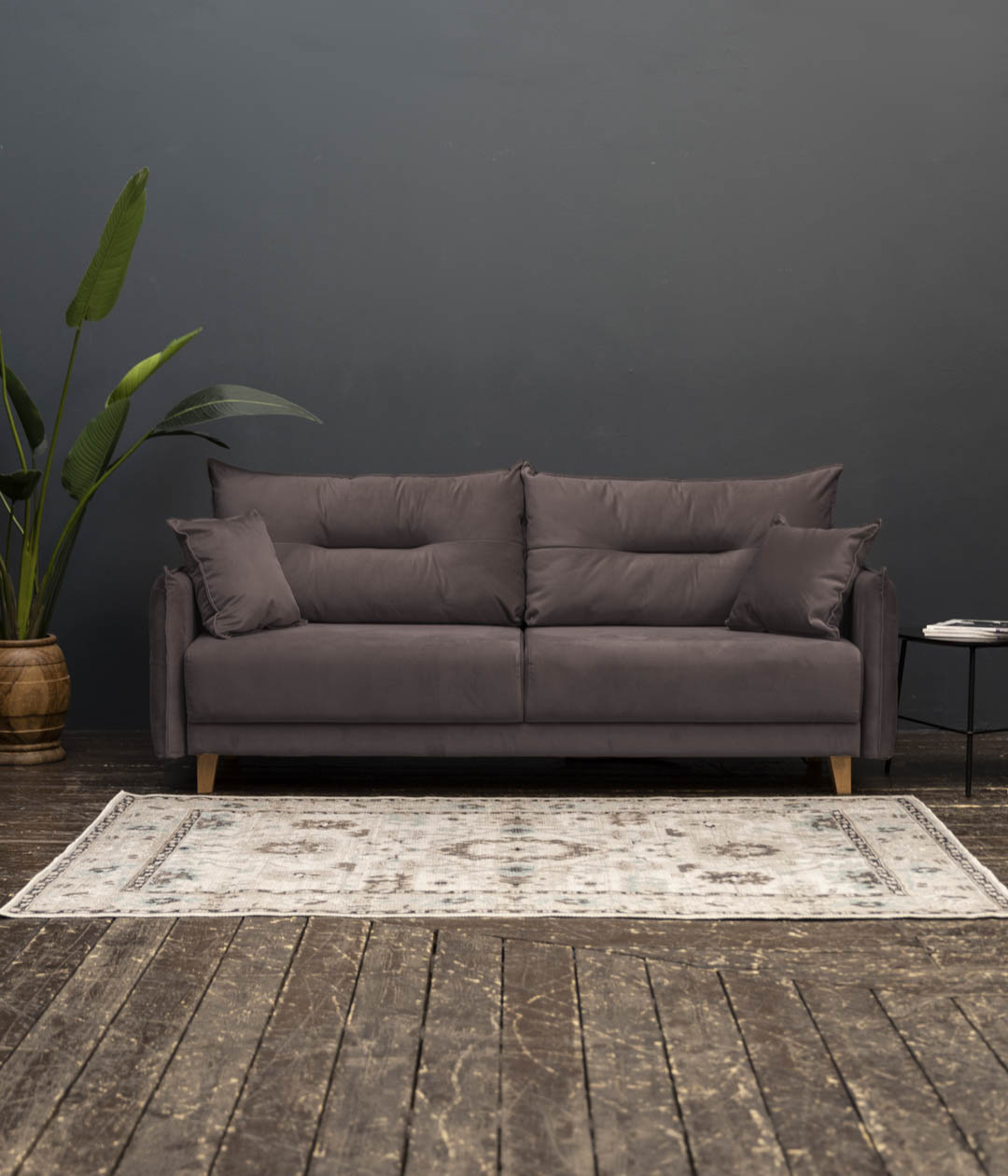Диван Нампа станет сердцем вашего интерьера, притягивая взгляды современным дизайном и оригинальными подлокотниками и подушками. Мягкий бархатистый велюр не только приятен на ощупь, но и обладает антивандальными свойствами, легко очищается. Высокие ножки придают легкость и элегантность, создавая атмосферу уюта и стиля.