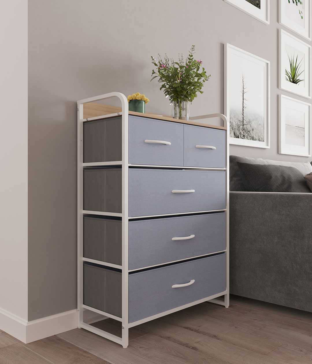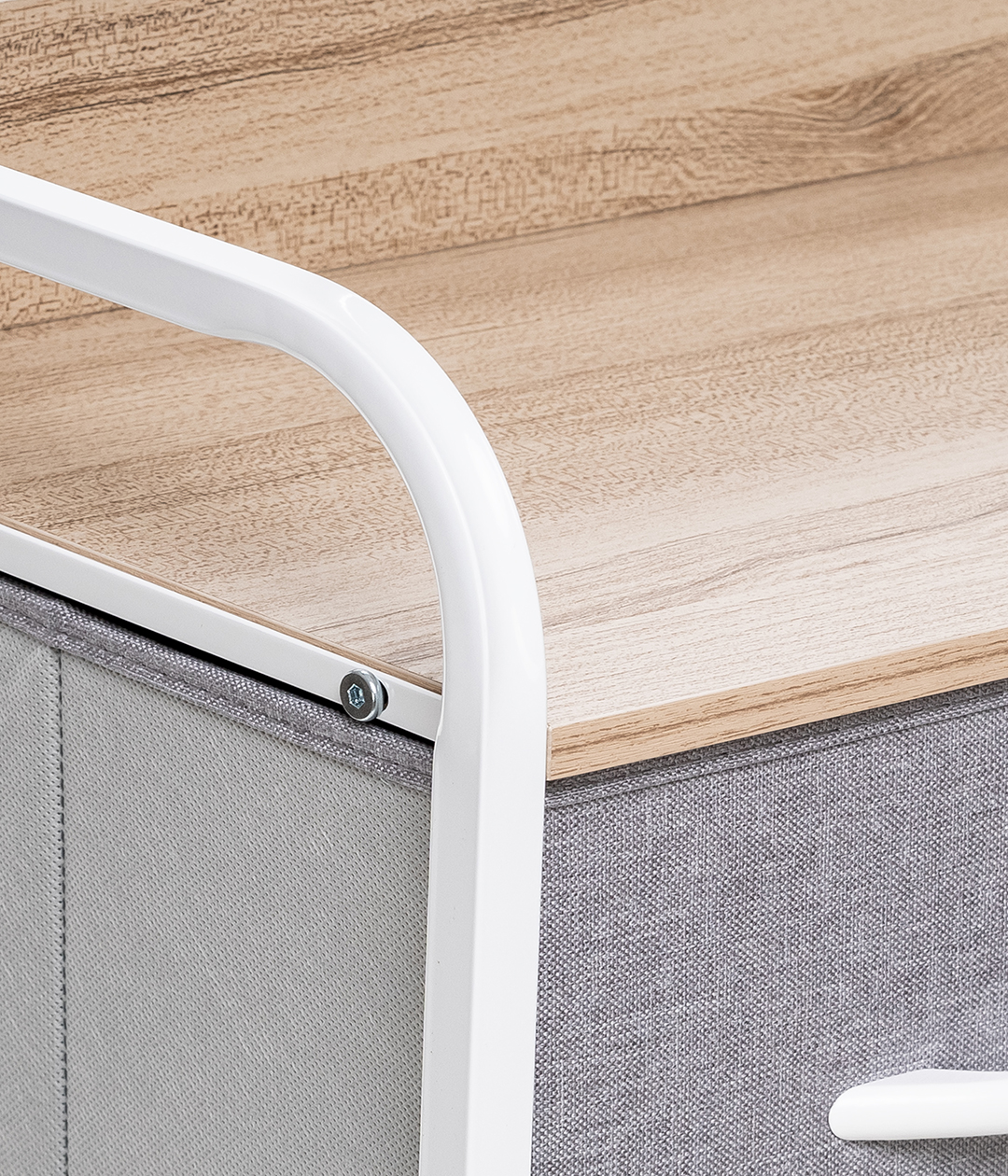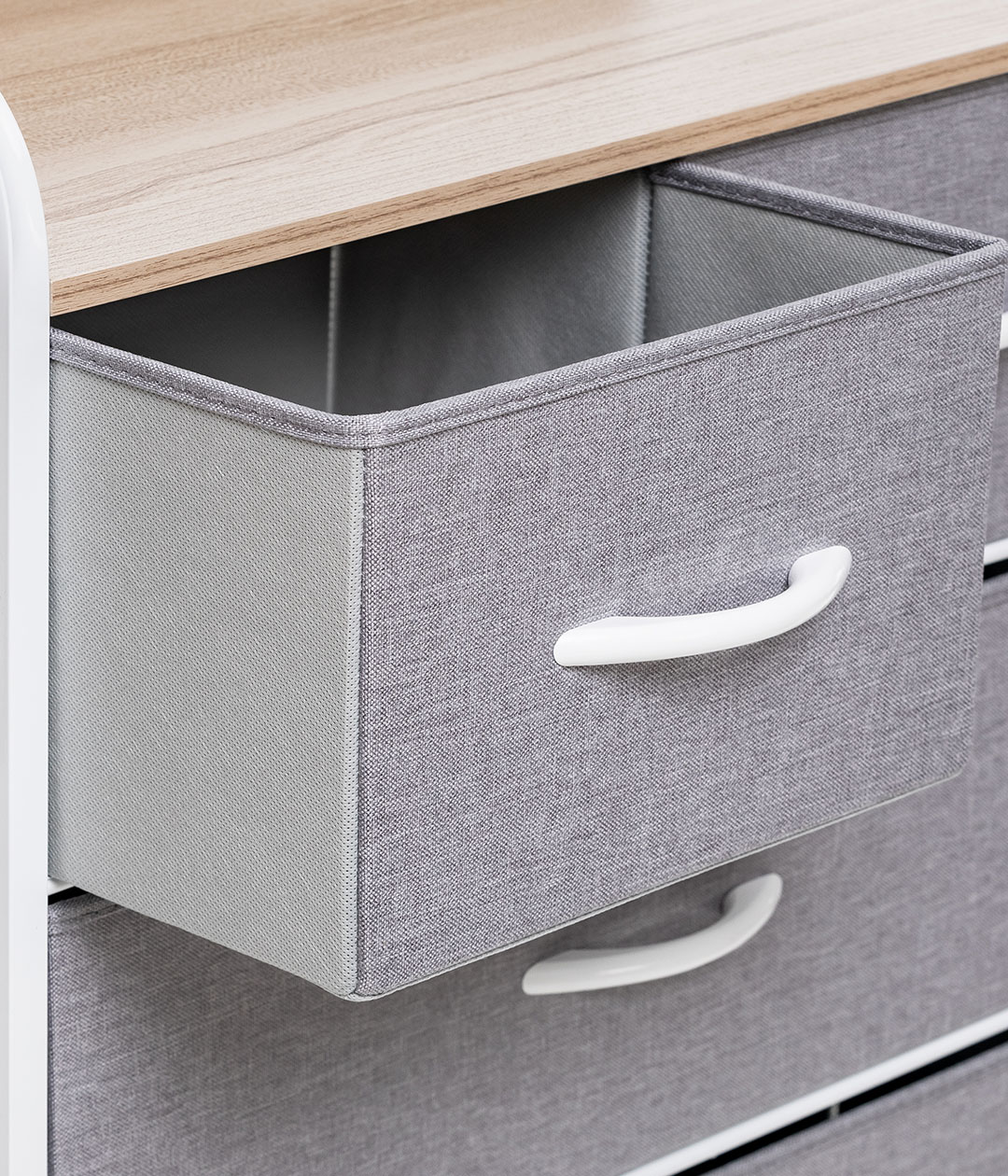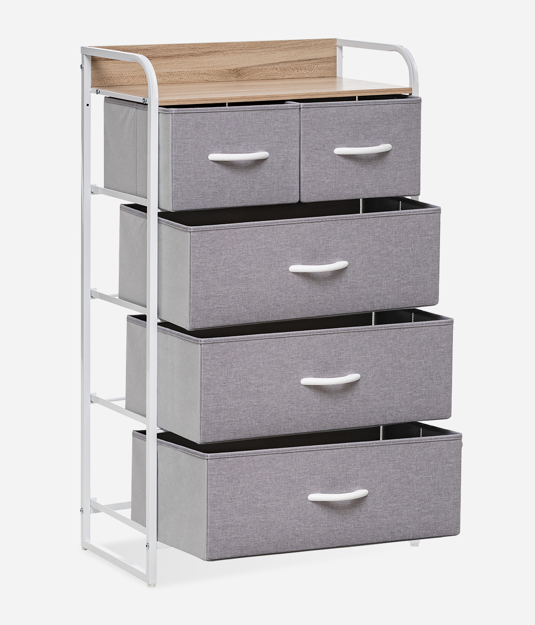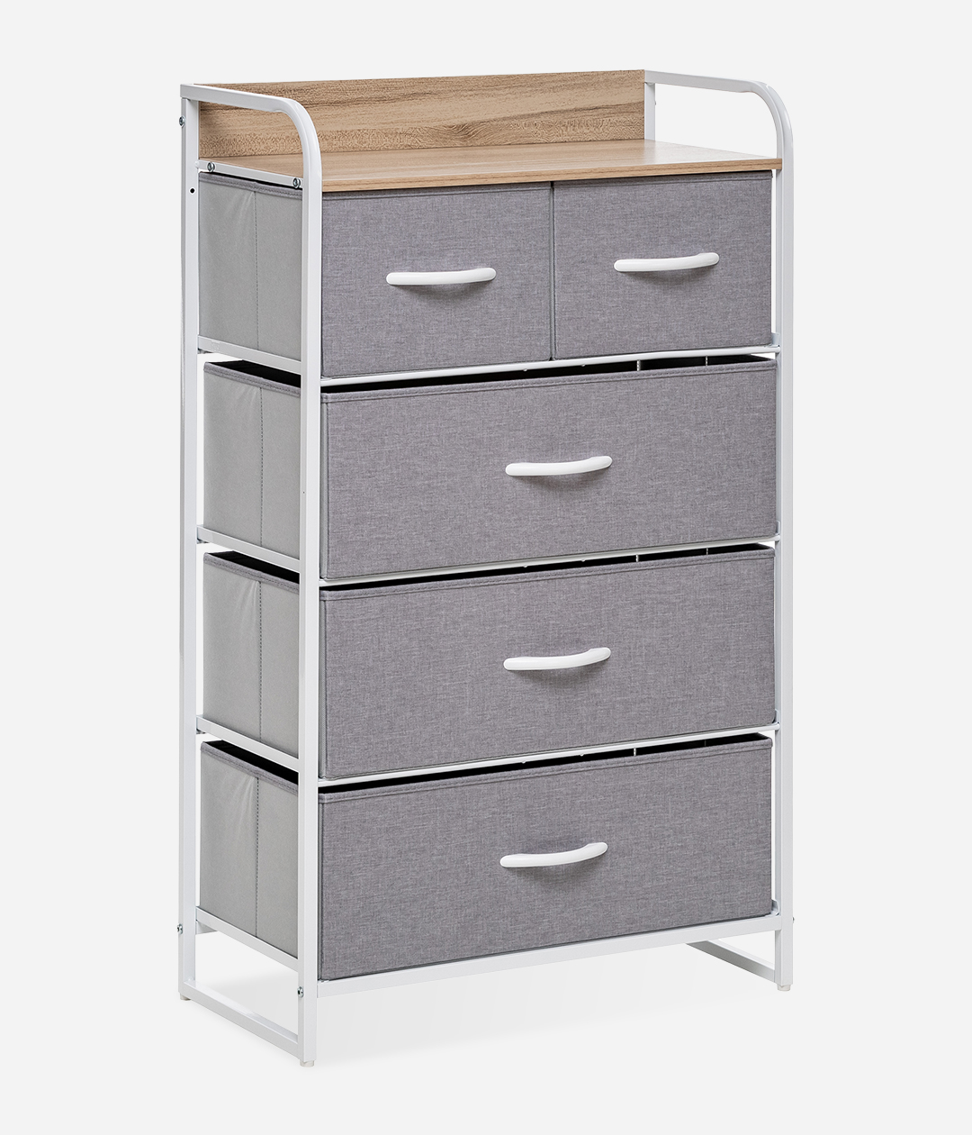 Комод Ноа позволит организовать упорядоченное хранение одежды и белья в современном интерьере. Легкая конструкция обеспечивает много места для хранения и имеет оригинальный дизайн, а сочетание серого и древесного цвета подарит в интерьер света и уюта.