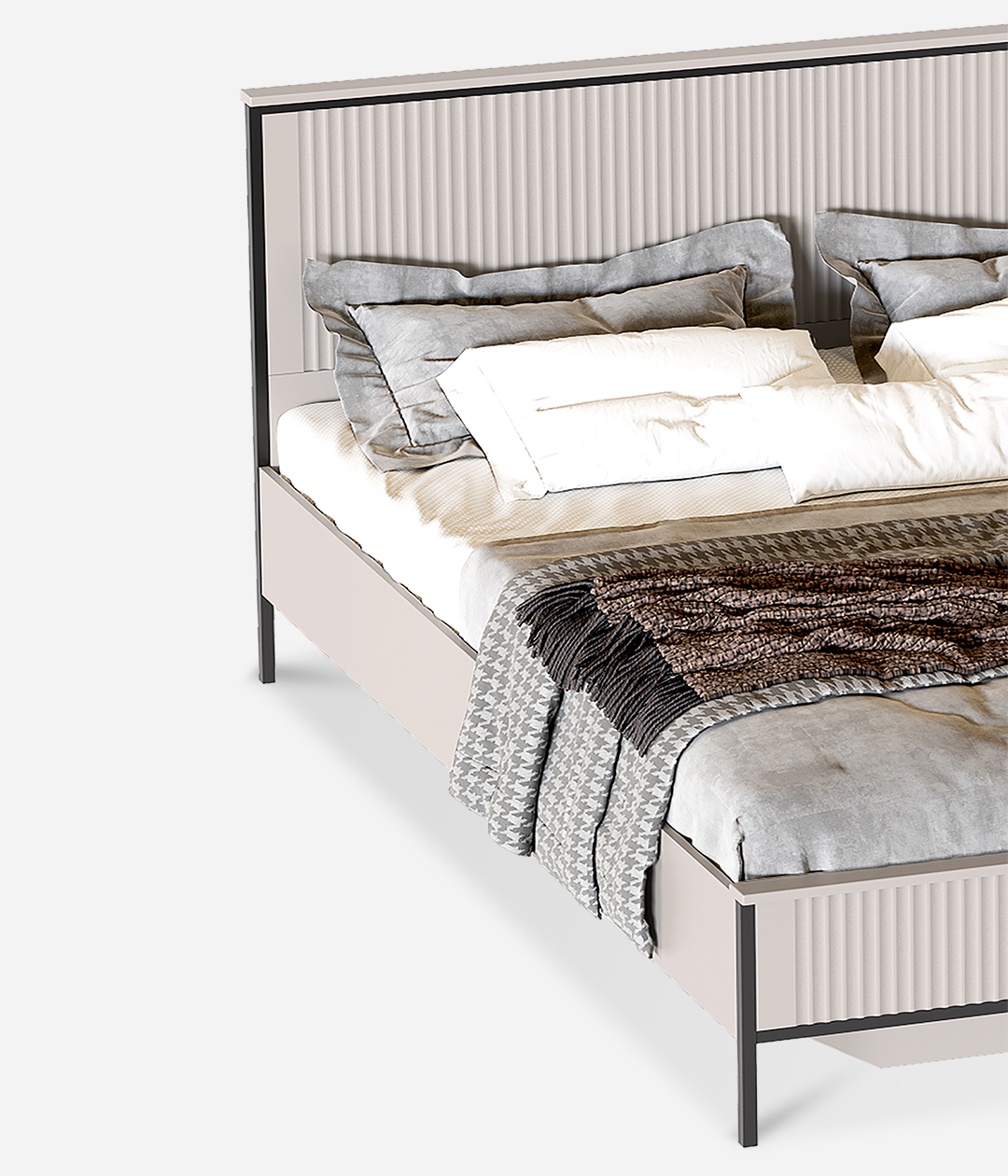 Кровать Нора на высоких металлических ножках в современном дизайне станет центром притяжения, сочетая стиль и функциональность. Её лаконичные линии и минималистичный профиль идеально вписываются в современные интерьеры, придавая комнате элегантный и утончённый вид.
