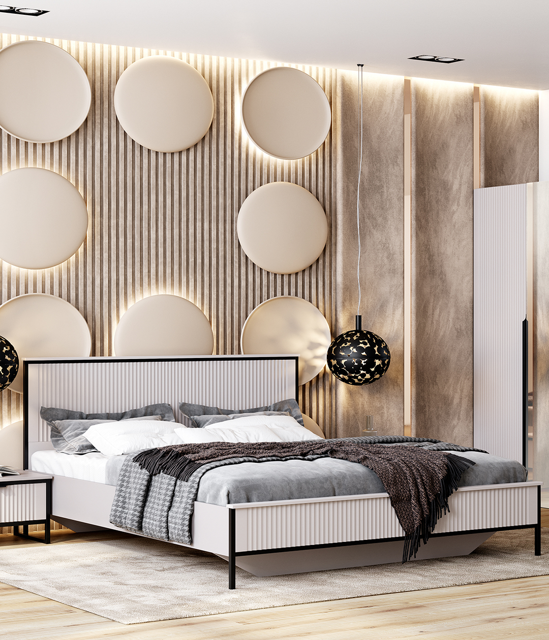Кровать Нора на высоких металлических ножках в современном дизайне станет центром притяжения, сочетая стиль и функциональность. Её лаконичные линии и минималистичный профиль идеально вписываются в современные интерьеры, придавая комнате элегантный и утончённый вид.