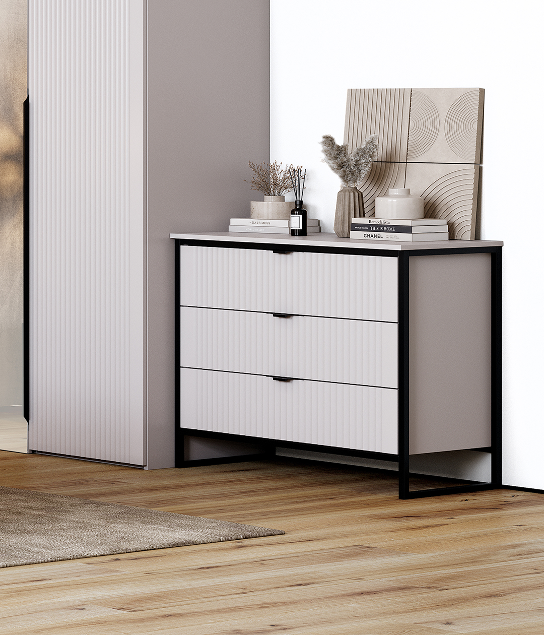 Комод Нора украсит любое помещение в стилях лофт и минимализм. Модуль отвечает всем современным требованиям к практичности и функциональности. Храните в нём свои вещи и аксессуары и наслаждайтесь теплым сочетанием цветов, которое легко задаст тон интерьеру всего дома.