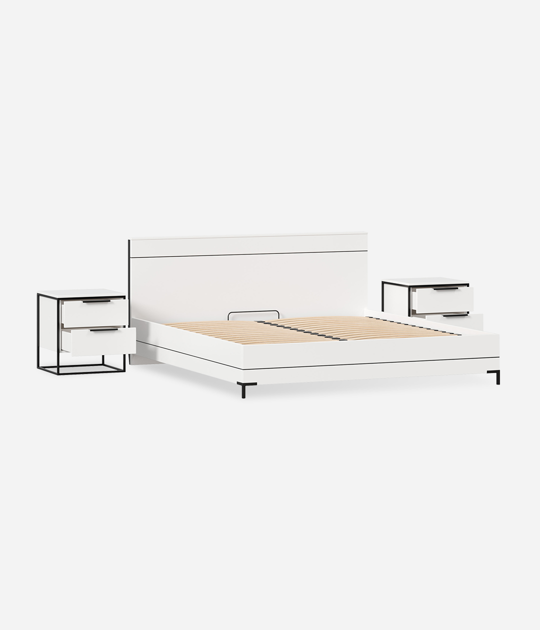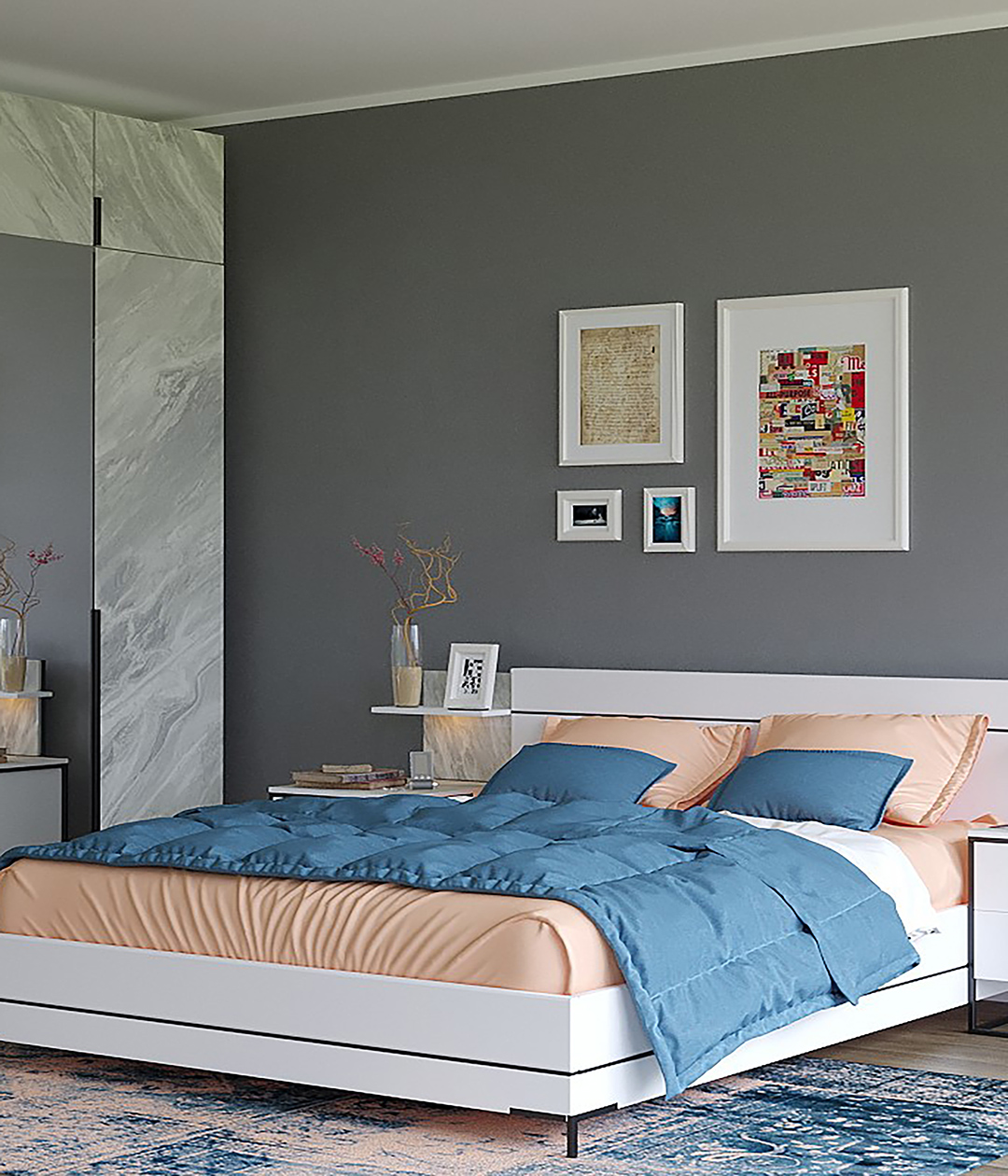 Спальня "Норд" выполнена в современном, скандинавском стиле. Минимализм интерьера только подчеркнет цвет мебели, светлый и легкий. Металлические опоры и металлические ручки дают определенный геометрический взгляд на комнату, которая подчеркнет характер стремительных и деловых людей. Лакированные фасады шкафа цвета Статуарио и подсветка модулей придадут светлый уют.