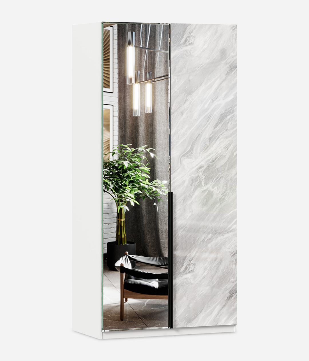Двухстворчатый шкаф «Норд» с широким отделением для хранения одежды украсит современную спальню. Фасады с эффектом мрамора и дерева позволяют создавать уникальные решения для нестандартного декорирования интерьера. Шкаф станет неотъемлемой частью вашего дома, наполнит его светом и сиянием в соответствии с современными тенденциями.