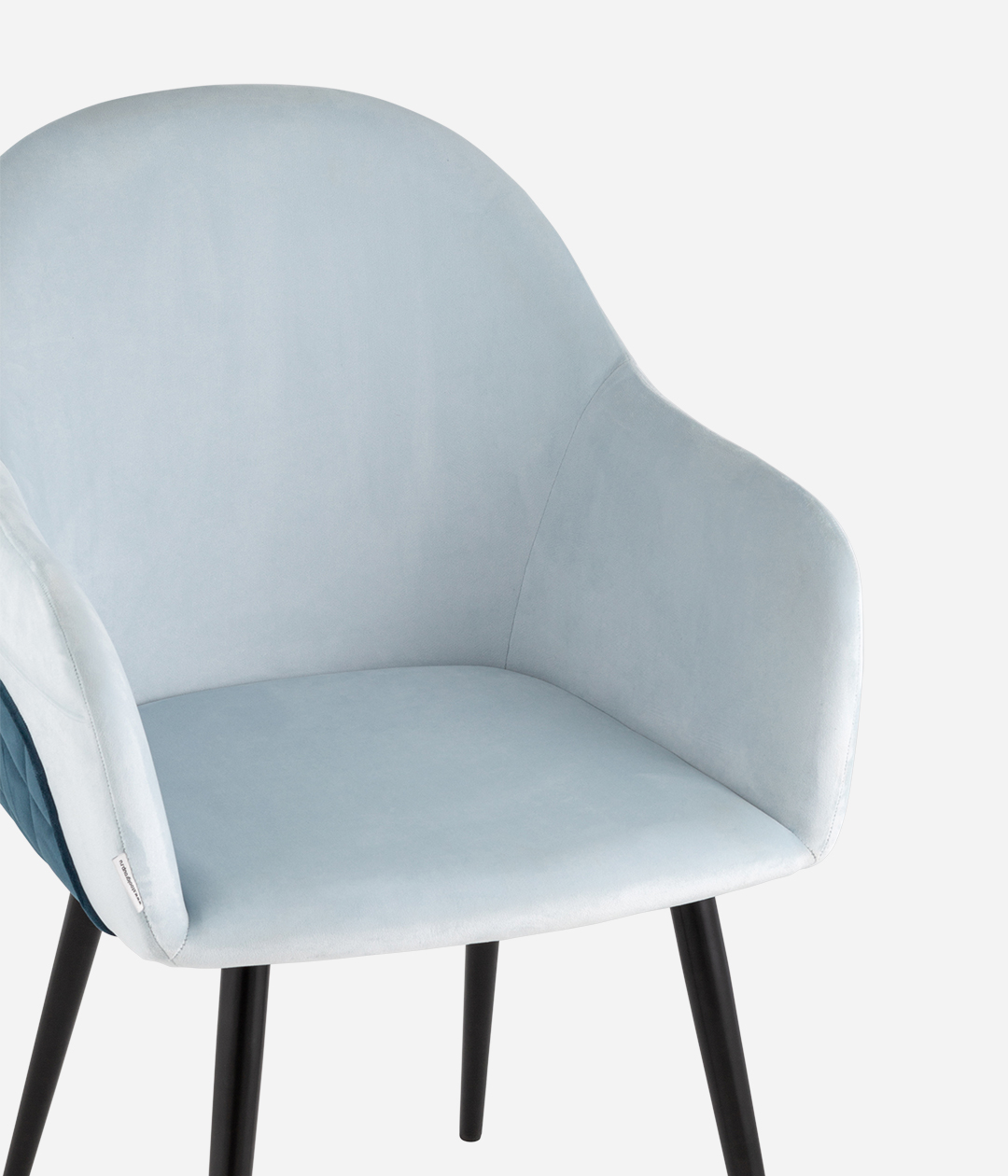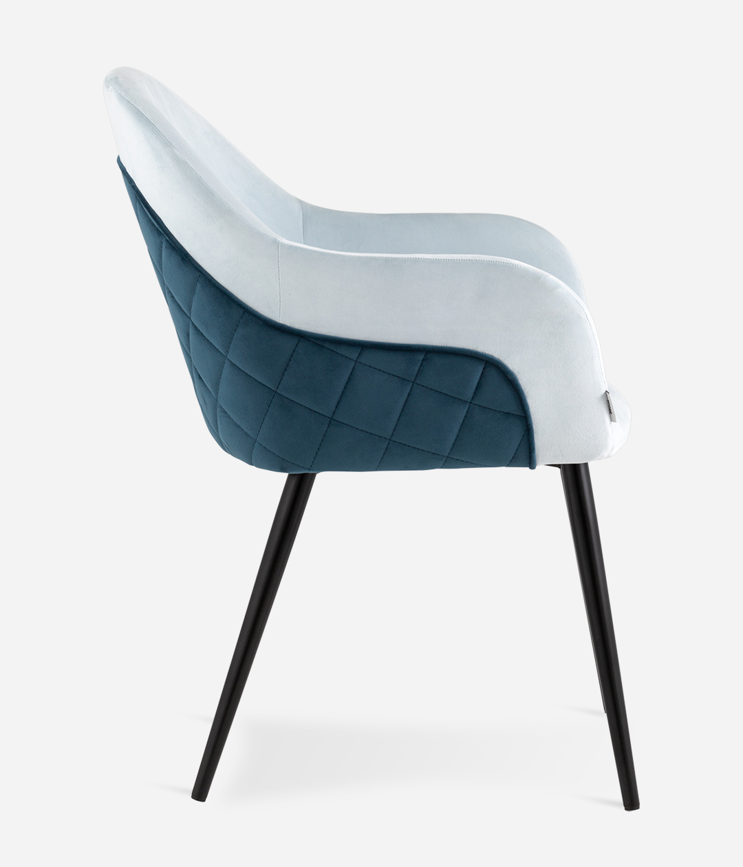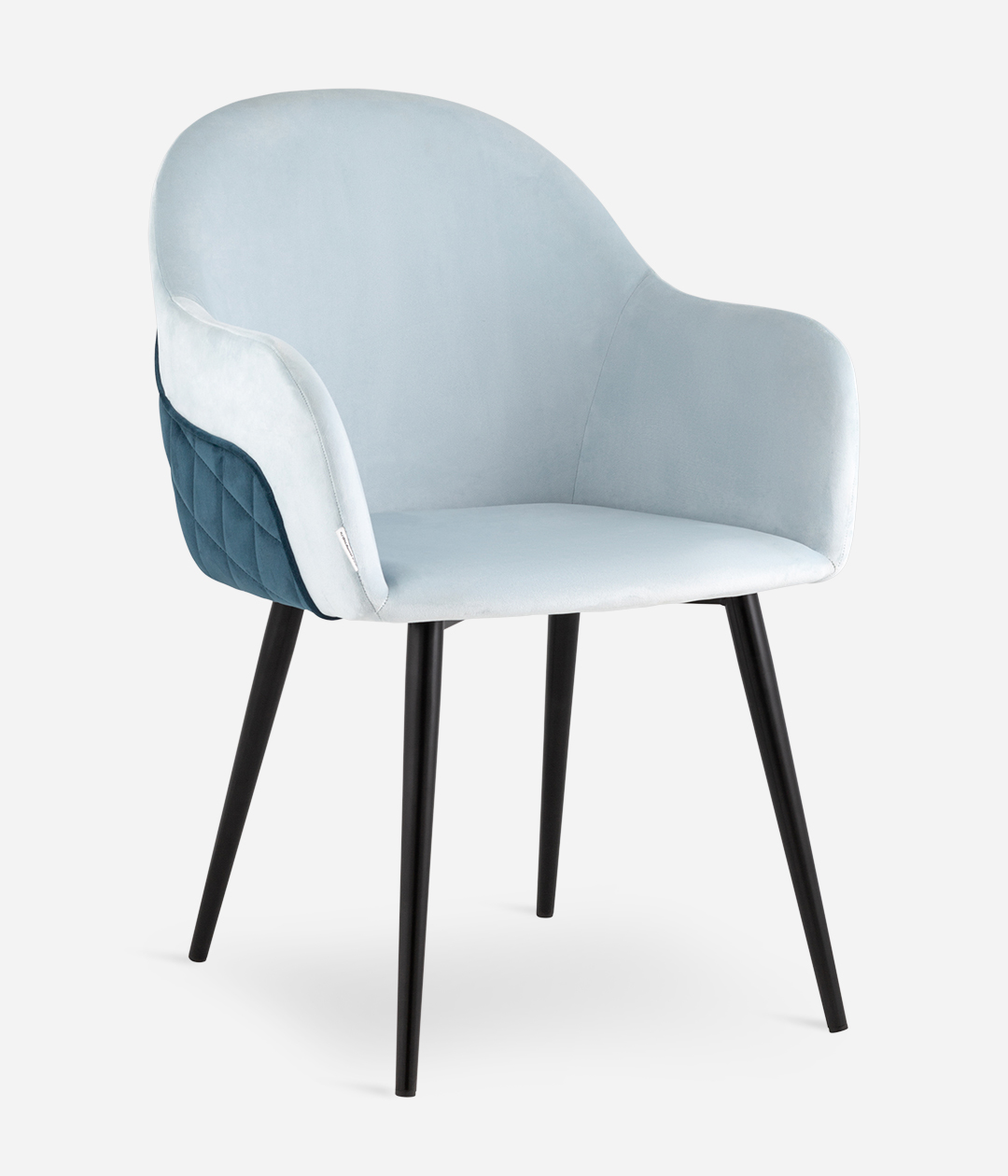 Стильный кухонный стул с двухцветной обивкой и мягкими подлокотниками. Красивый дизайн украсит как столовую зону кухни и гостиной, так и дополнит интерьер ресторана или кафе.