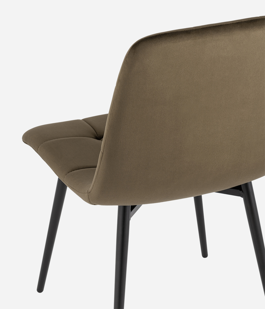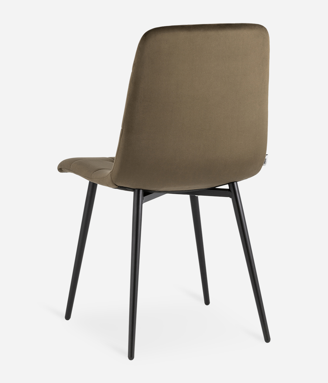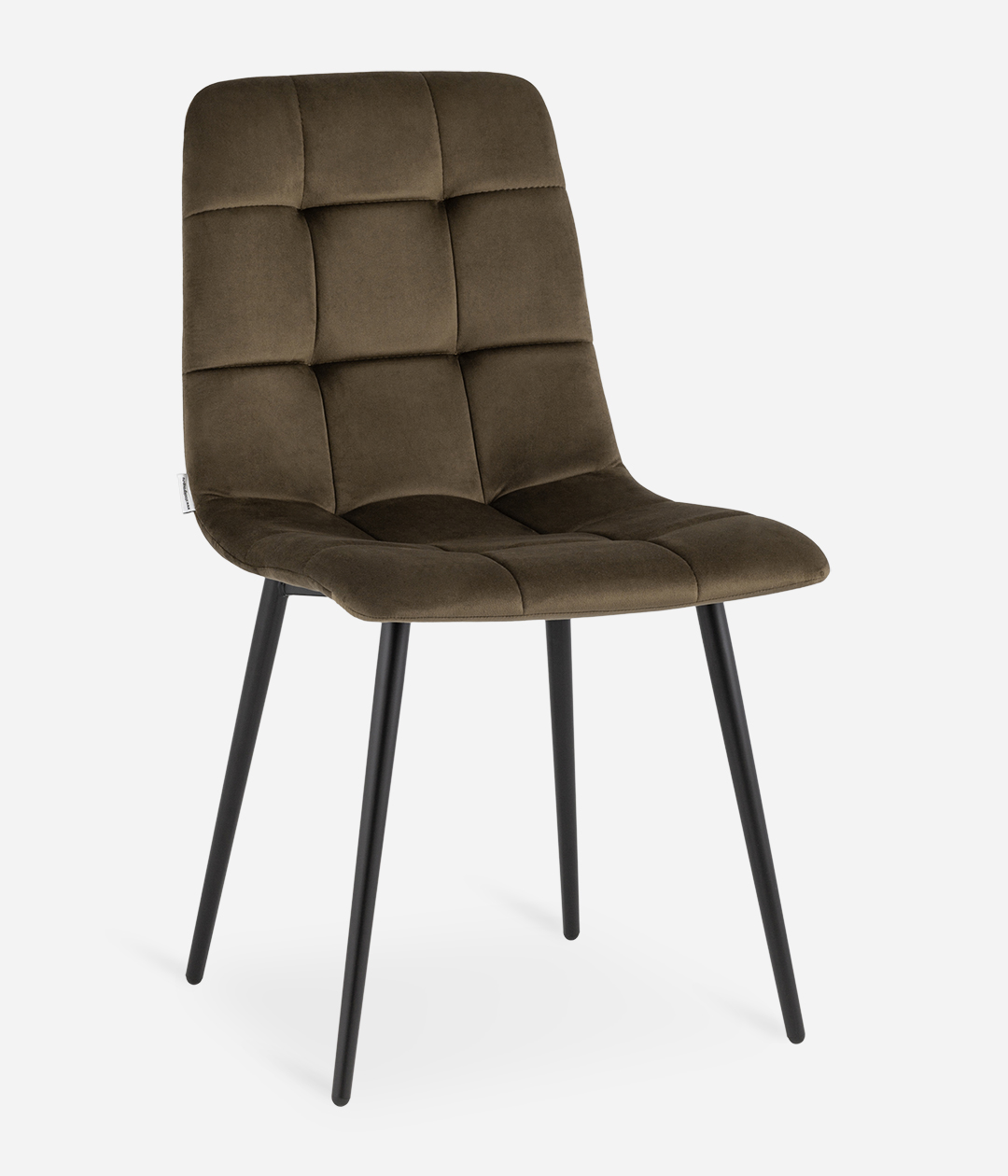 Классический стул в мягкой обивке из велюра без подлокотников. Анатомическая форма сиденья обеспечивает удобство, а декоративная стяжка придает объём и защищает от образования вмятин. Металлические ножки выдерживают значительные нагрузки.