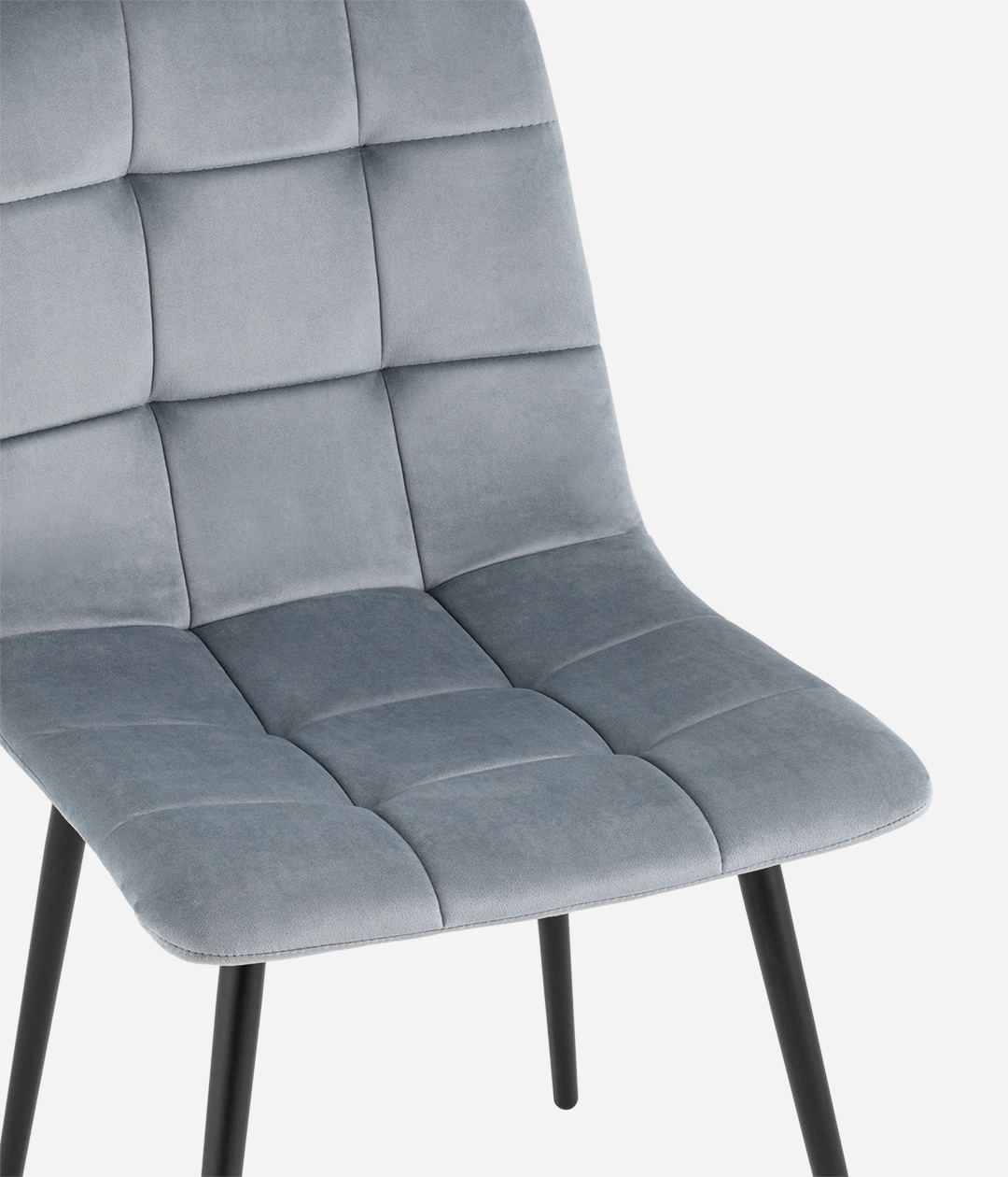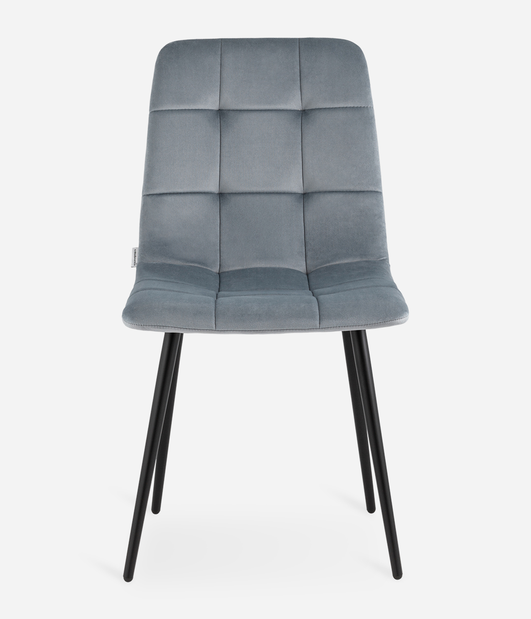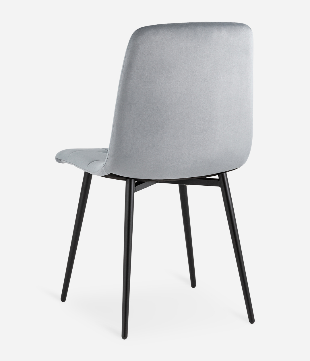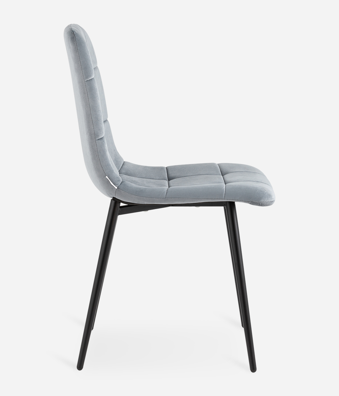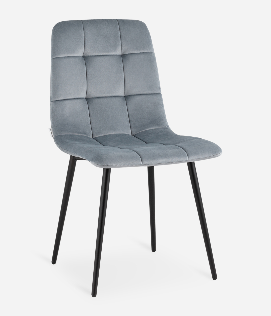 Классический стул в мягкой обивке из велюра без подлокотников. Анатомическая форма сиденья обеспечивает удобство, а декоративная стяжка придает объём и защищает от образования вмятин. Металлические ножки выдерживают значительные нагрузки.