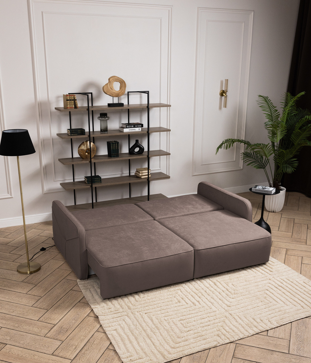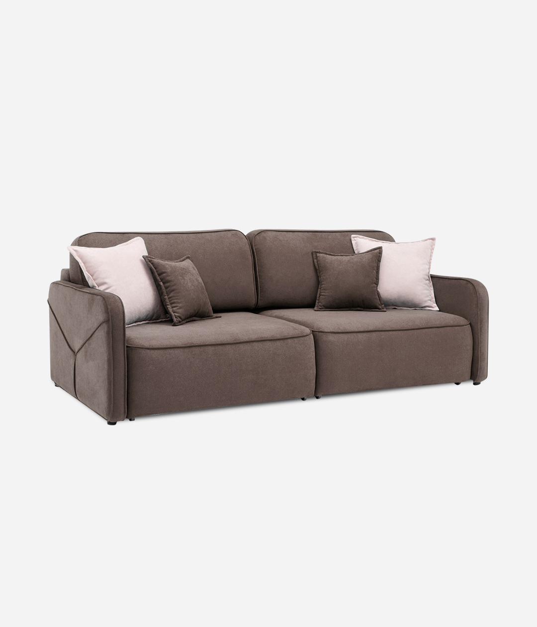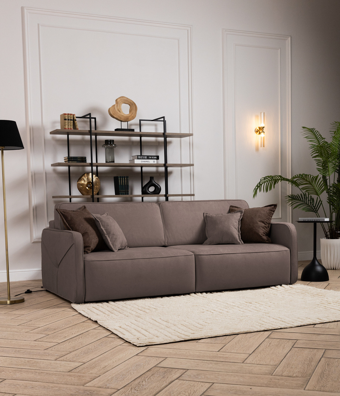 Диван Олеан с узкими подлокотниками, украшенными оригинальным декором, сочетает в себе стильный дизайн и практичность. Глубокая посадка обеспечивает максимальный комфорт, а простая система раскладывания позволяет легко превратить его в большое спальное место. Этот диван станет не только уютным местом для отдыха, но и стильным элементом интерьера, подходящим для повседневного использования.