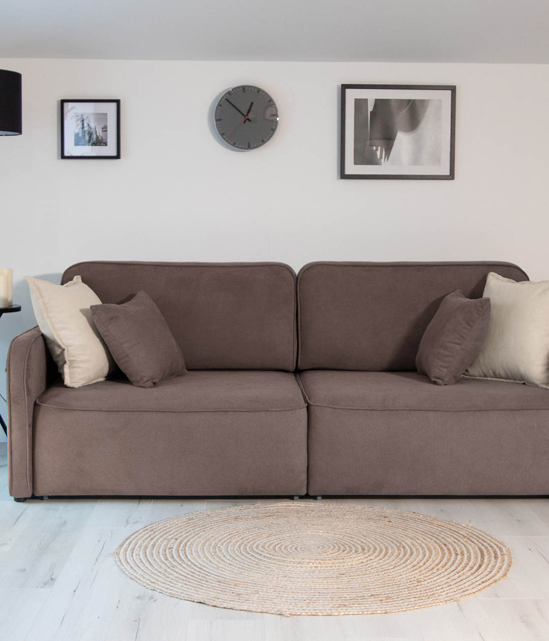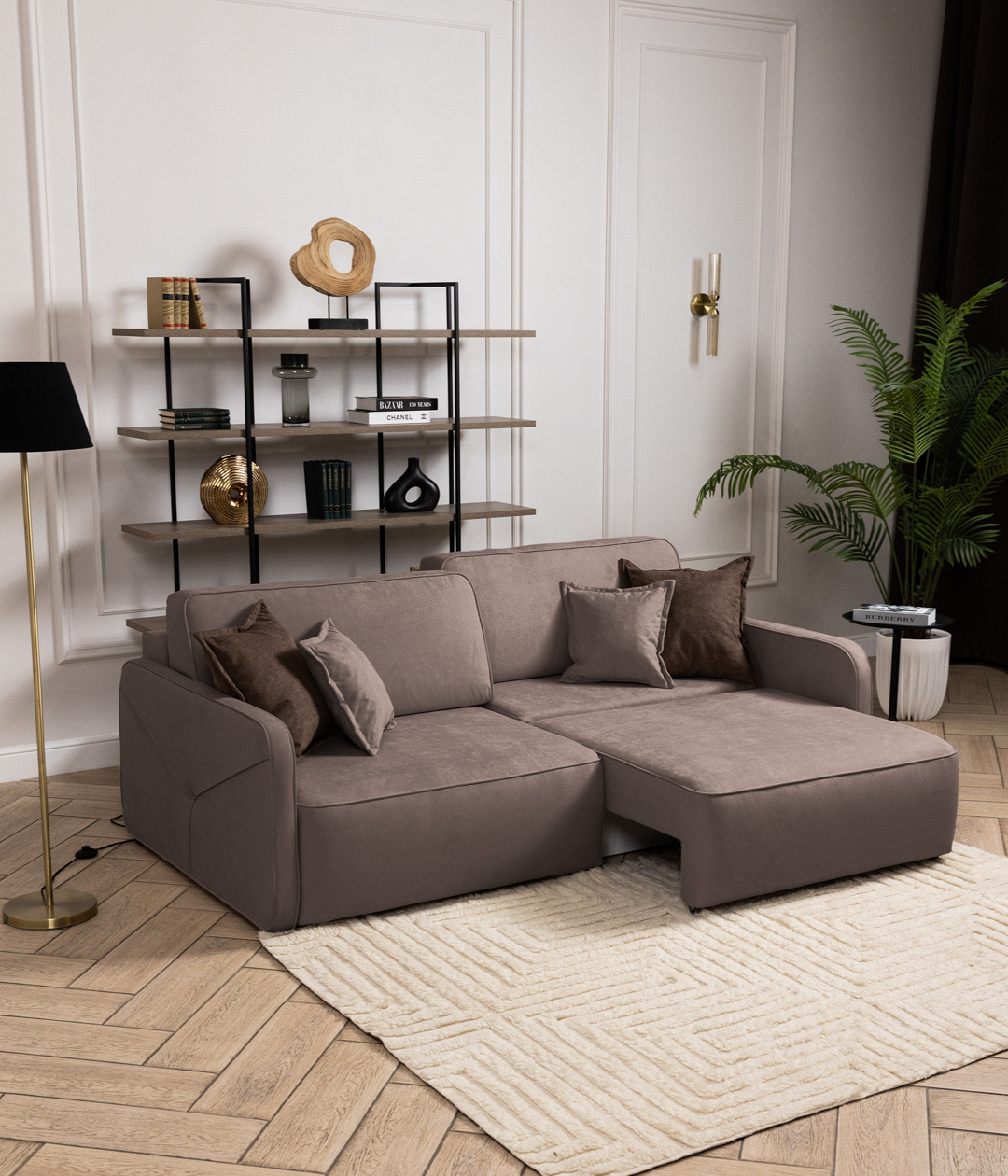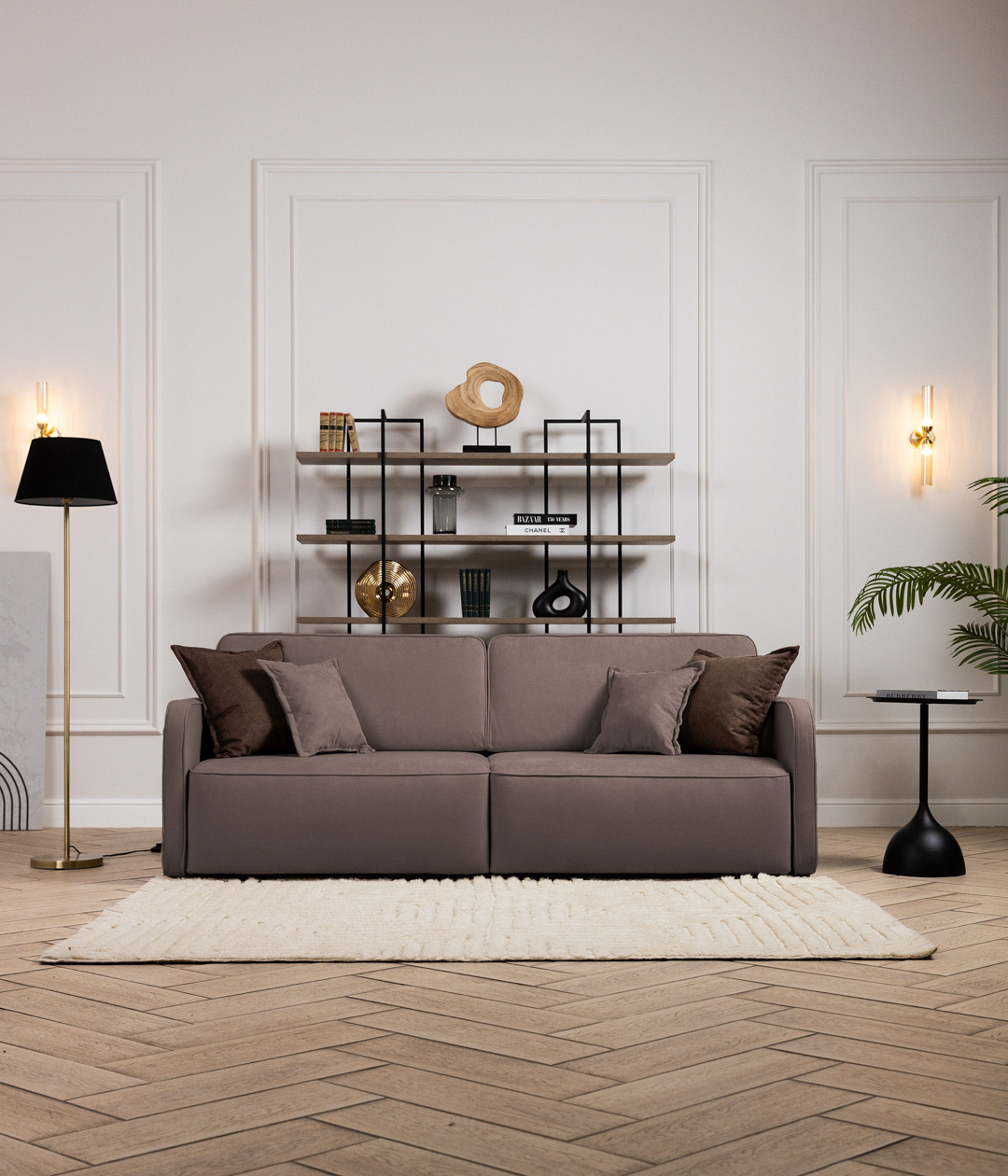 Диван Олеан с узкими подлокотниками, украшенными оригинальным декором, сочетает в себе стильный дизайн и практичность. Глубокая посадка обеспечивает максимальный комфорт, а простая система раскладывания позволяет легко превратить его в большое спальное место. Этот диван станет не только уютным местом для отдыха, но и стильным элементом интерьера, подходящим для повседневного использования.