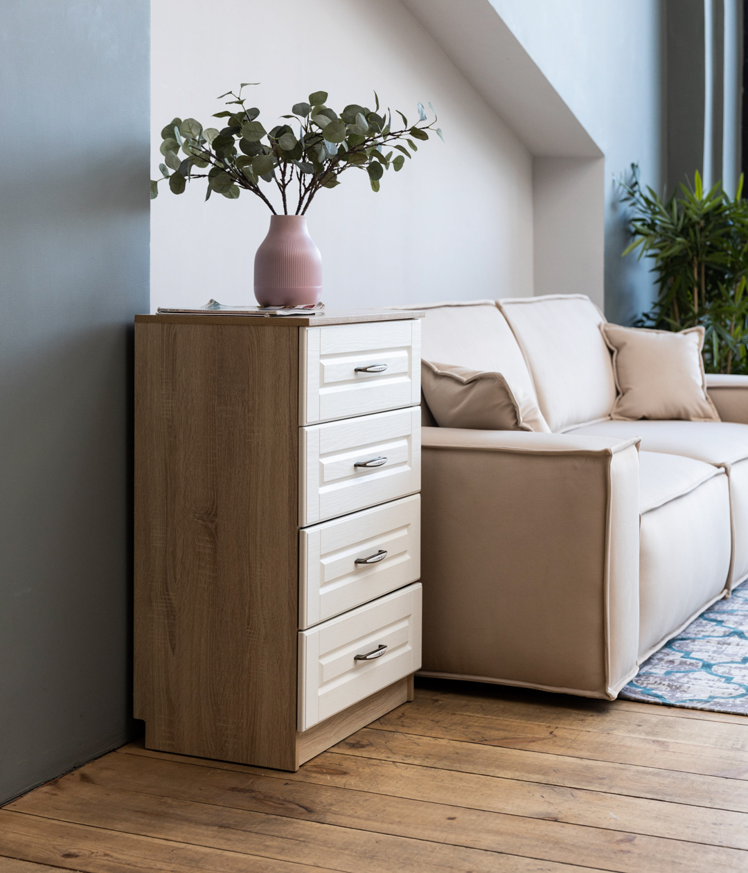 Тумба Оливия станет практичным дополнением спальни или гостиной. Модель имеет небольшую глубину, что позволит разместить его даже в условиях небольшого пространства.