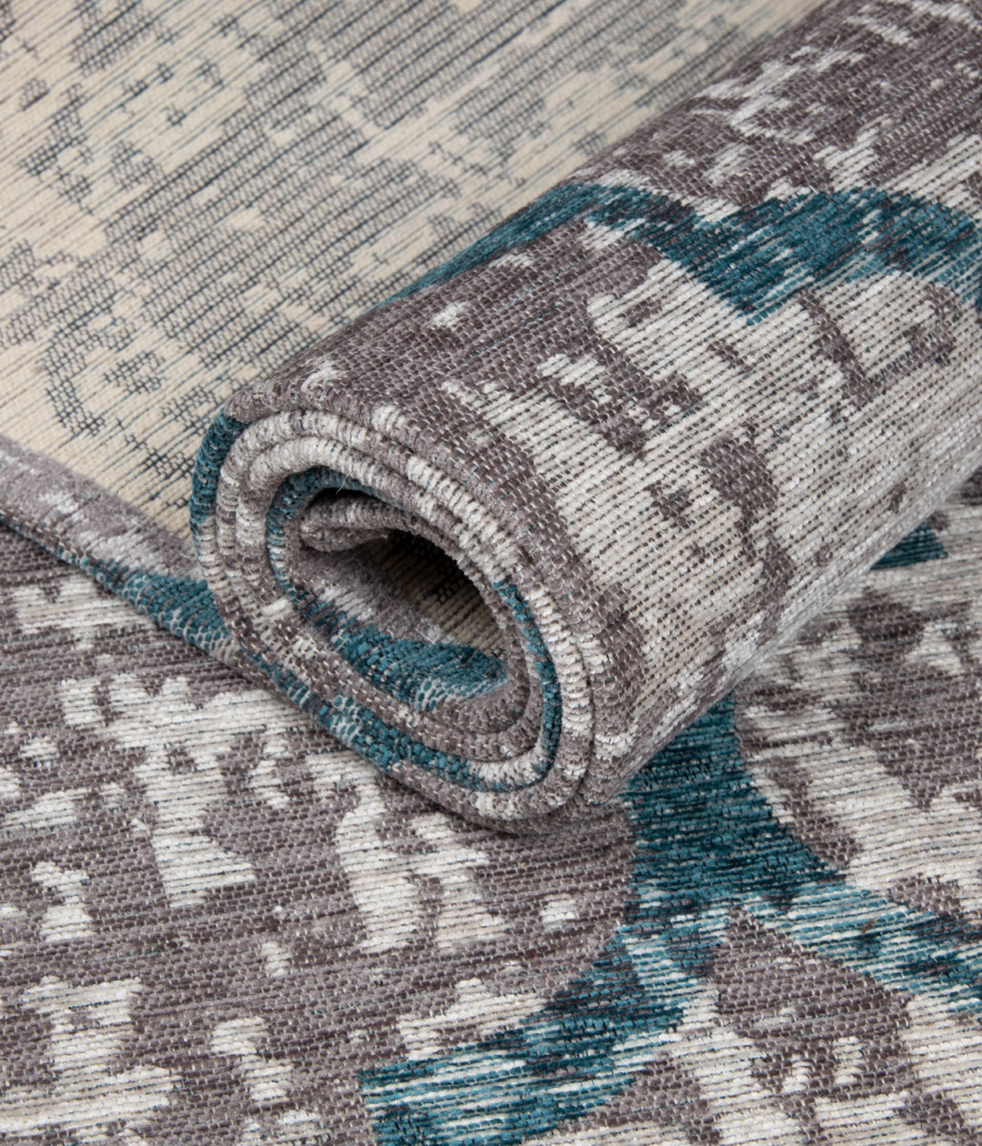 Безворсовый ковер OLVI BOSFOR выполнен в неоклассическом дизайне. Универсальный орнамент в холодных тонах впишется в большинство интерьеров неоклассической стилистики. Ковер будет радовать долго благодаря износоустойчивости и простоте ухода.
