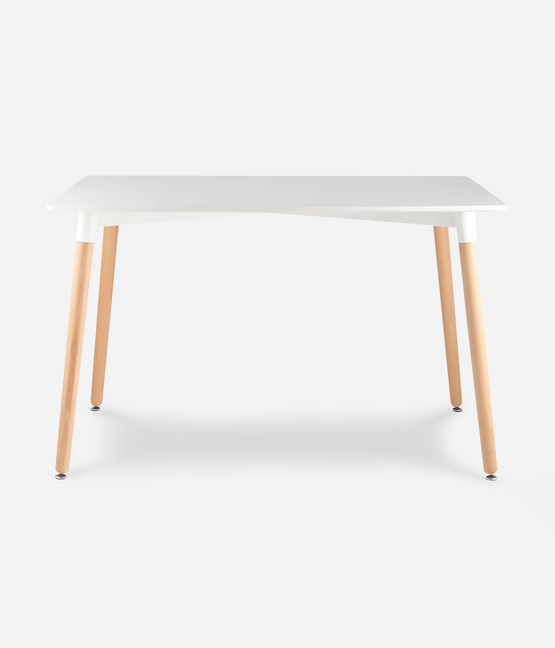 Обеденный стол на деревянных ножках с лаконичной столешницей.