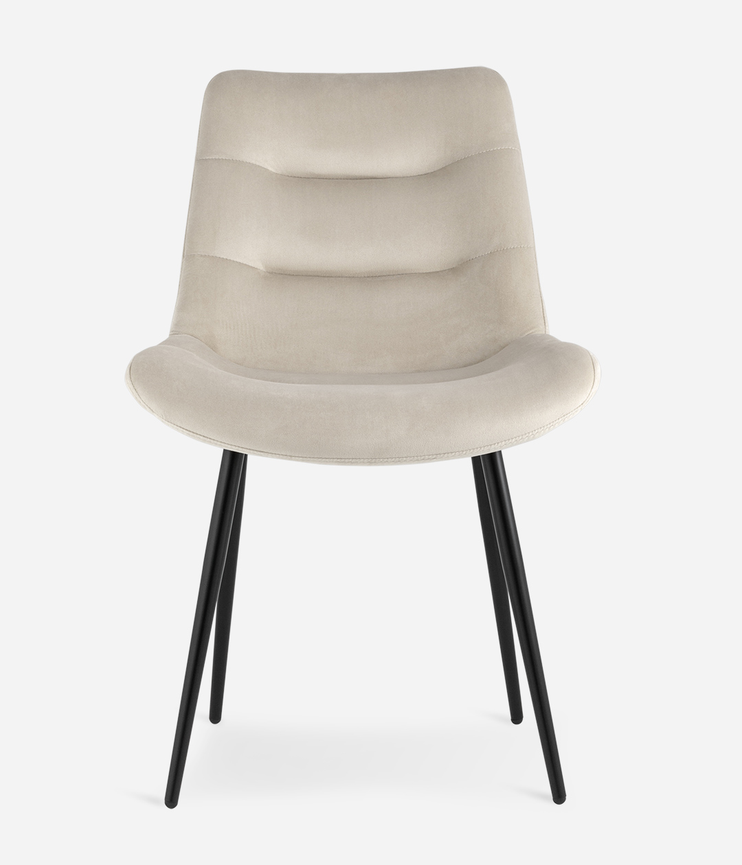 Кухонный стул в мягкой обивке из велюра без подлокотников. Анатомическая форма сиденья обеспечивает удобство, а декоративная стяжка придает объём и защищает от образования вмятин.