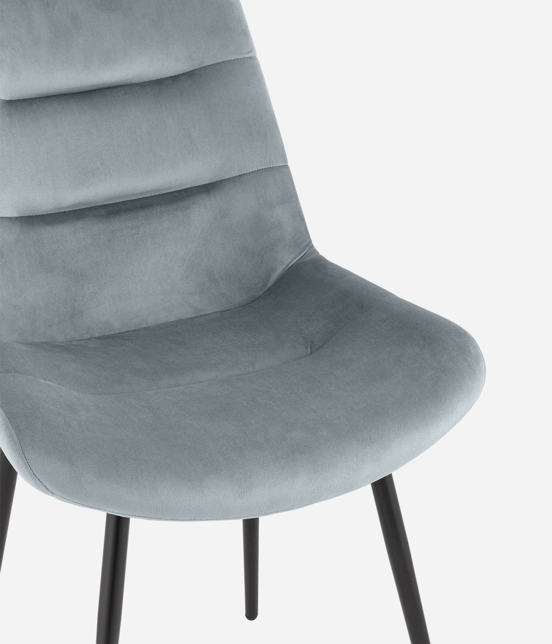 Кухонный стул в мягкой обивке из велюра без подлокотников. Анатомическая форма сиденья обеспечивает удобство, а декоративная стяжка придает объём и защищает от образования вмятин.