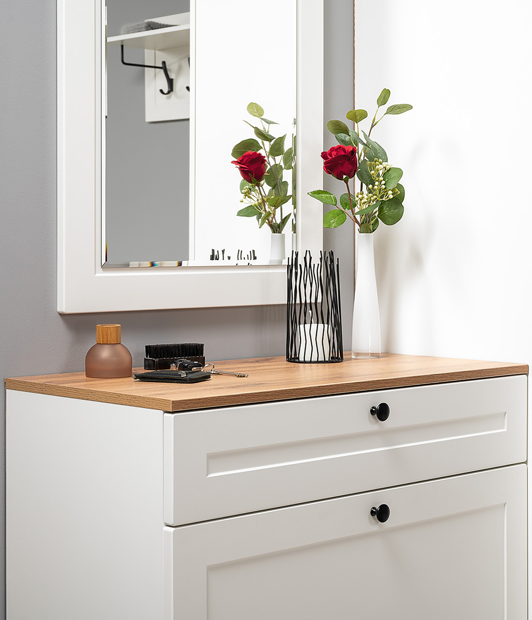 Обувница Остин — практичное решение для компактного хранения нескольких пар обуви в небольшой прихожей. Для быстрого доступа к полезным мелочам предусмотрен небольшой ящик, который оснащен направляющими скрытого монтажа, что обеспечит выдвижение на всю глубину, плавный бесшумный ход и длительный срок эксплуатации. Регулируемые опоры позволяют разместить модель даже на полу с неровностями.
