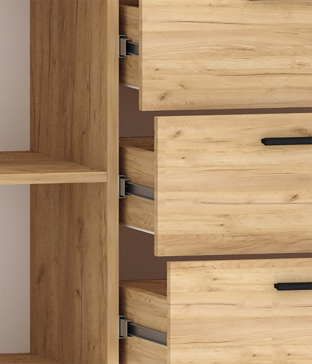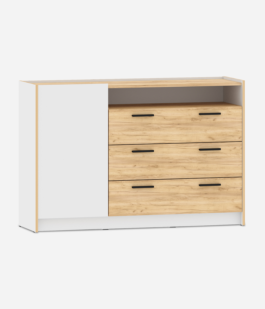 Тумба с тремя ящиками, полками и отрытой нишей из новой коллекции Оттавия представлен в двух оттенках на выбор – белый и антрацит, которые легко впишутся как в скандинавский, так и в урбанистический интерьер и придадут спальне современный вид.