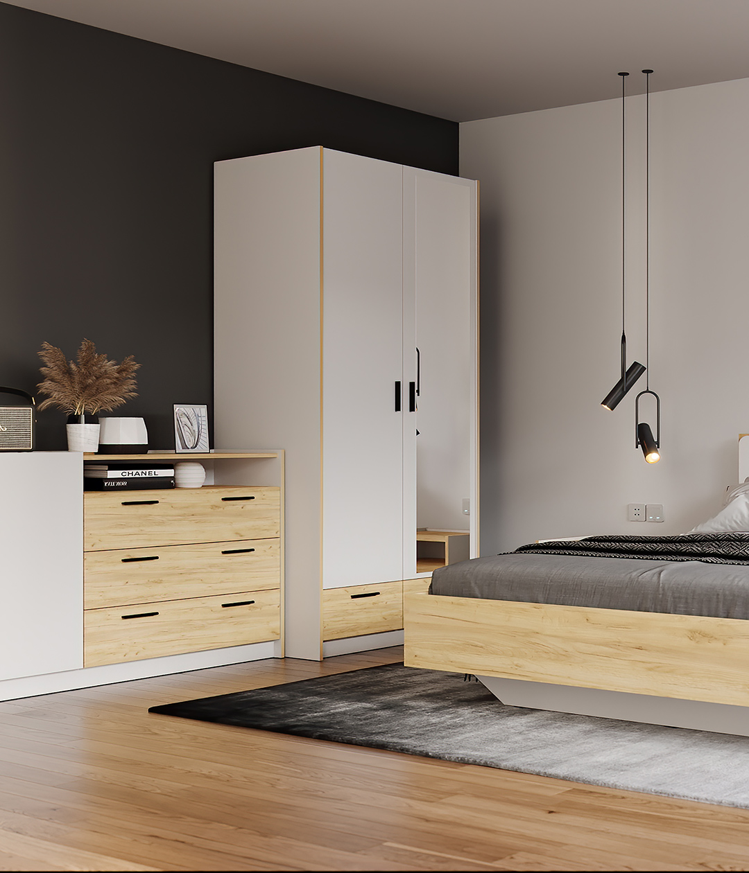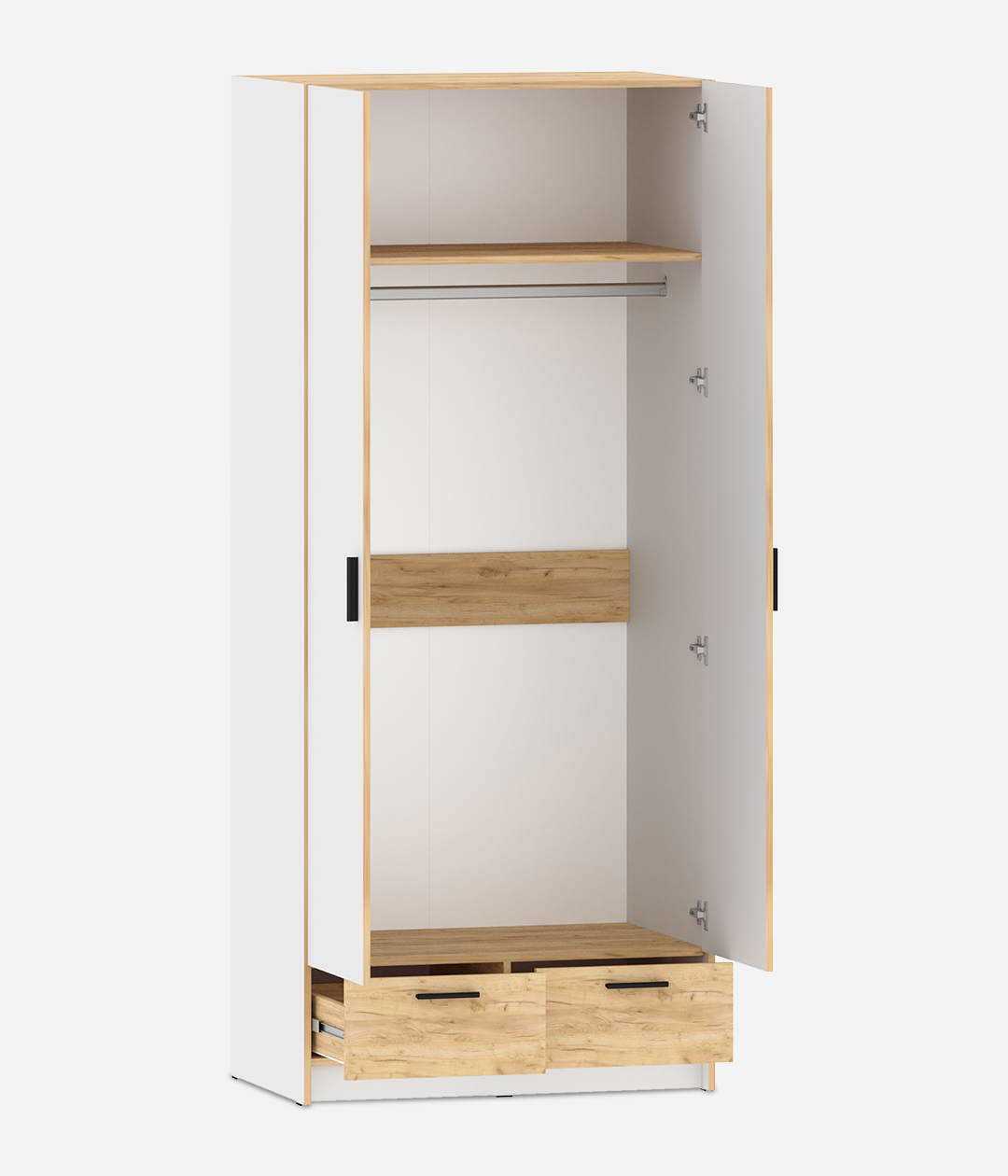 Двустворчатый шкаф для одежды со штангой и двумя ящиками из новой коллекции Оттавия представлен в двух вариантах – с зеркалом на одной створке и без него, а также в двух цветах – белый и антрацит, на счет которых шкаф прекрасно подойдет для спальни в скандинавском или урбанистическом стиле.