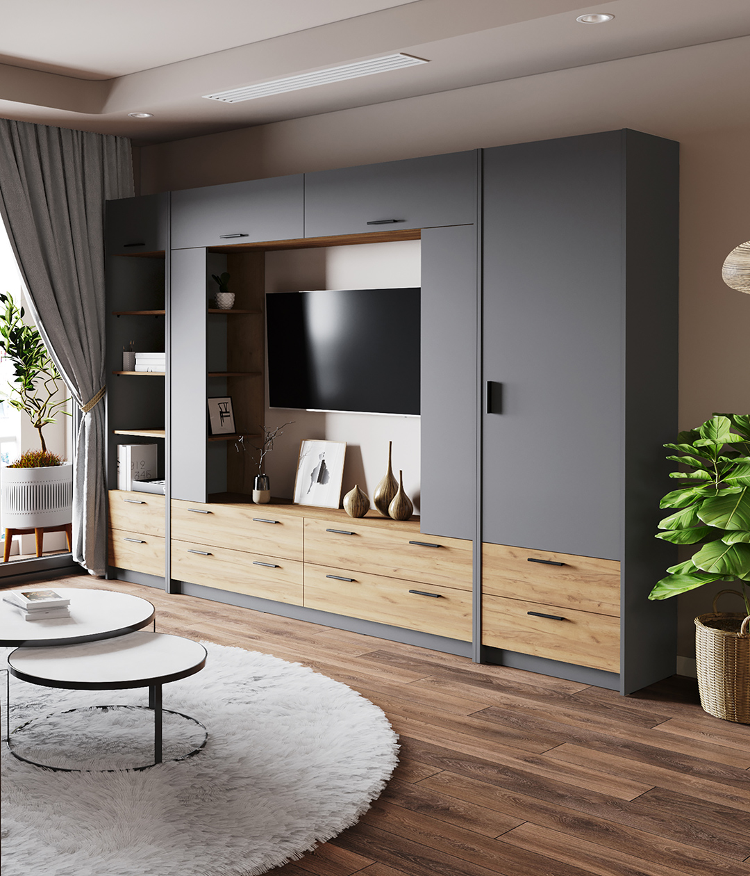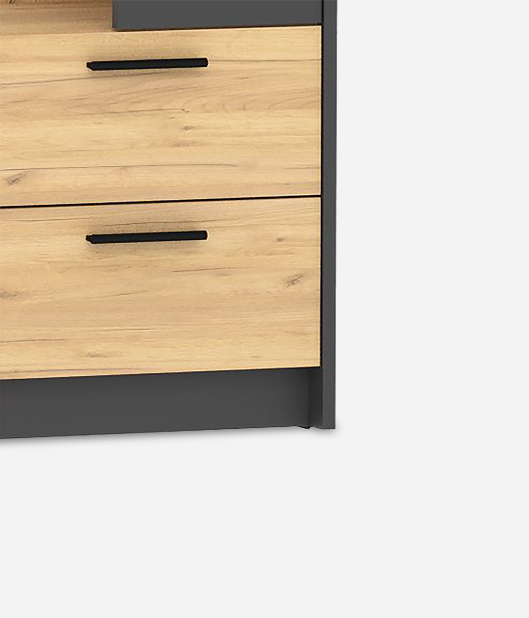 Комбинированный шкаф с четырьмя широкими ящиками и вместительными полками из новой коллекции Оттавия представлен в двух цветах на выбор – белый и антрацит. Шкаф отлично подойдет в гостиную для любого современного интерьера, как скандинавского, так и урбанистического.