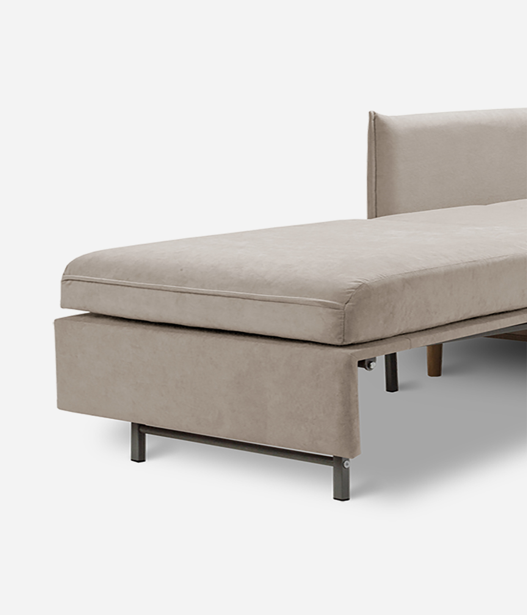 Высокие ножки дивана делают его форму легкой, максимально открывая пространство. Кроме того, такая конструкция упрощает уборку, делая доступным напольное покрытие.