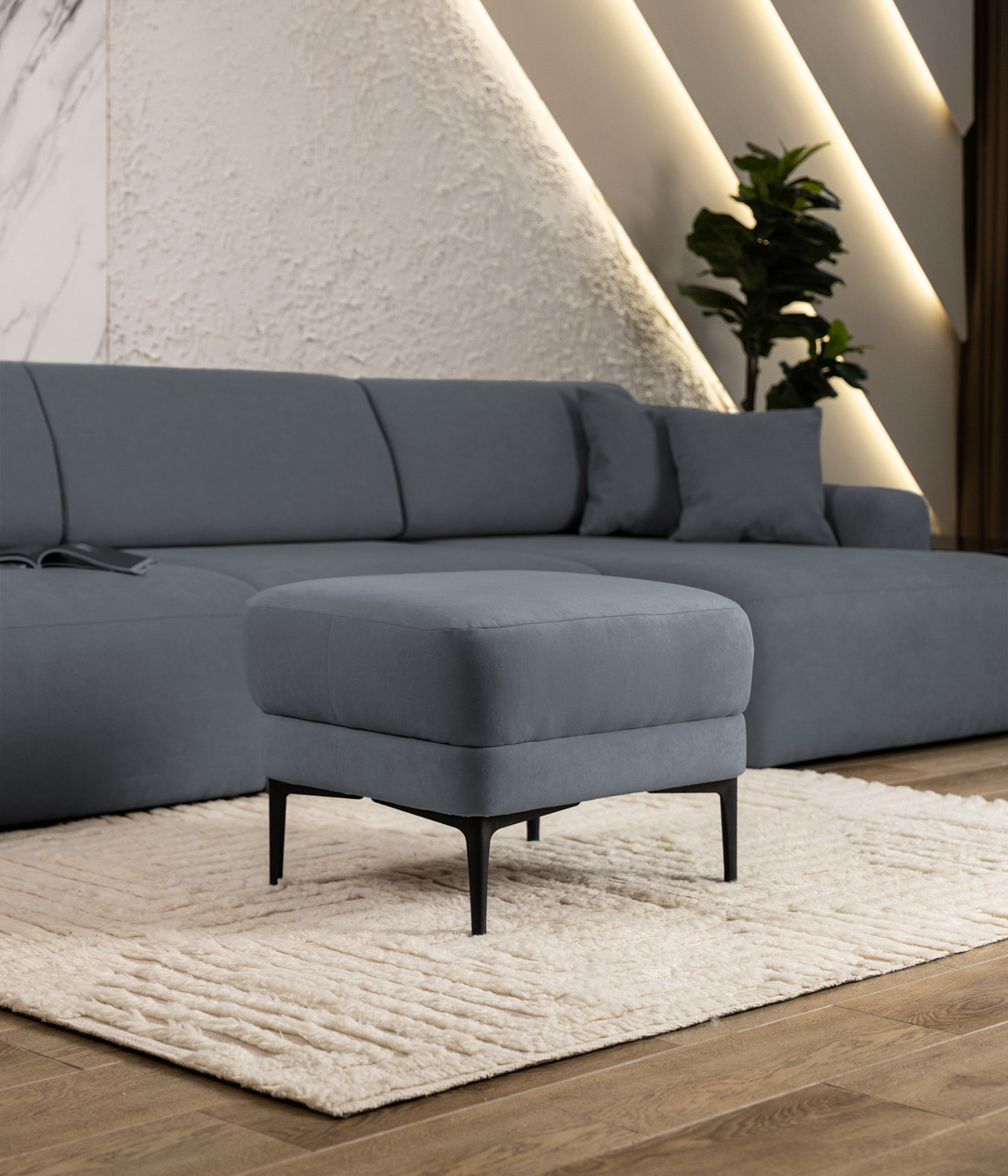 Лаконичный и стильный, изящный пуф Палмер. Высокие металлические ножки и плавные линии создают легкость, визуально расширяя пространство. Пуф будет не только прекрасным дополнением к одноименному дивану, но и стильным акцентом интерьера сам по себе.