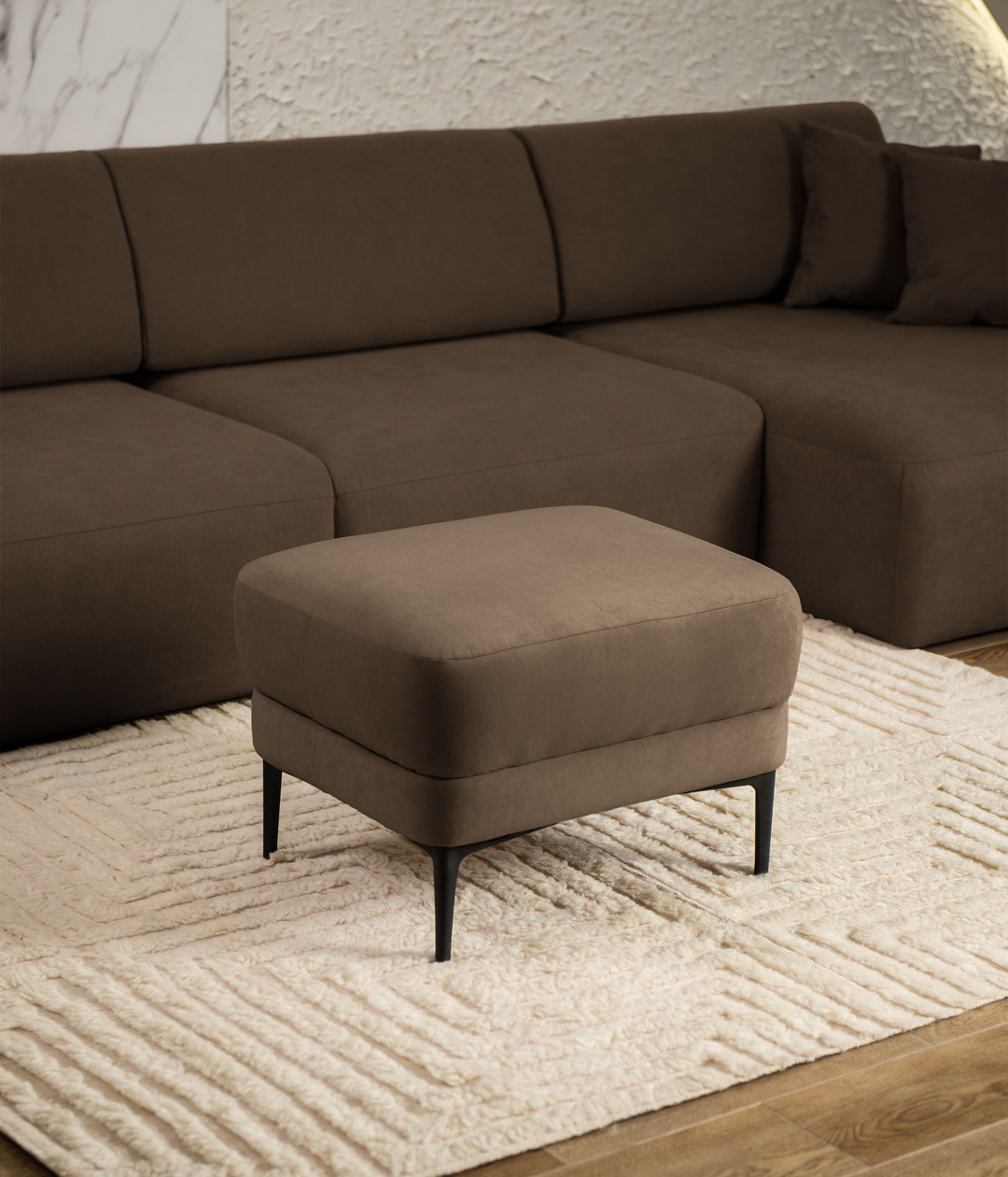 Лаконичный и стильный, изящный пуф Палмер. Высокие металлические ножки и плавные линии создают легкость, визуально расширяя пространство. Пуф будет не только прекрасным дополнением к одноименному дивану, но и стильным акцентом интерьера сам по себе.