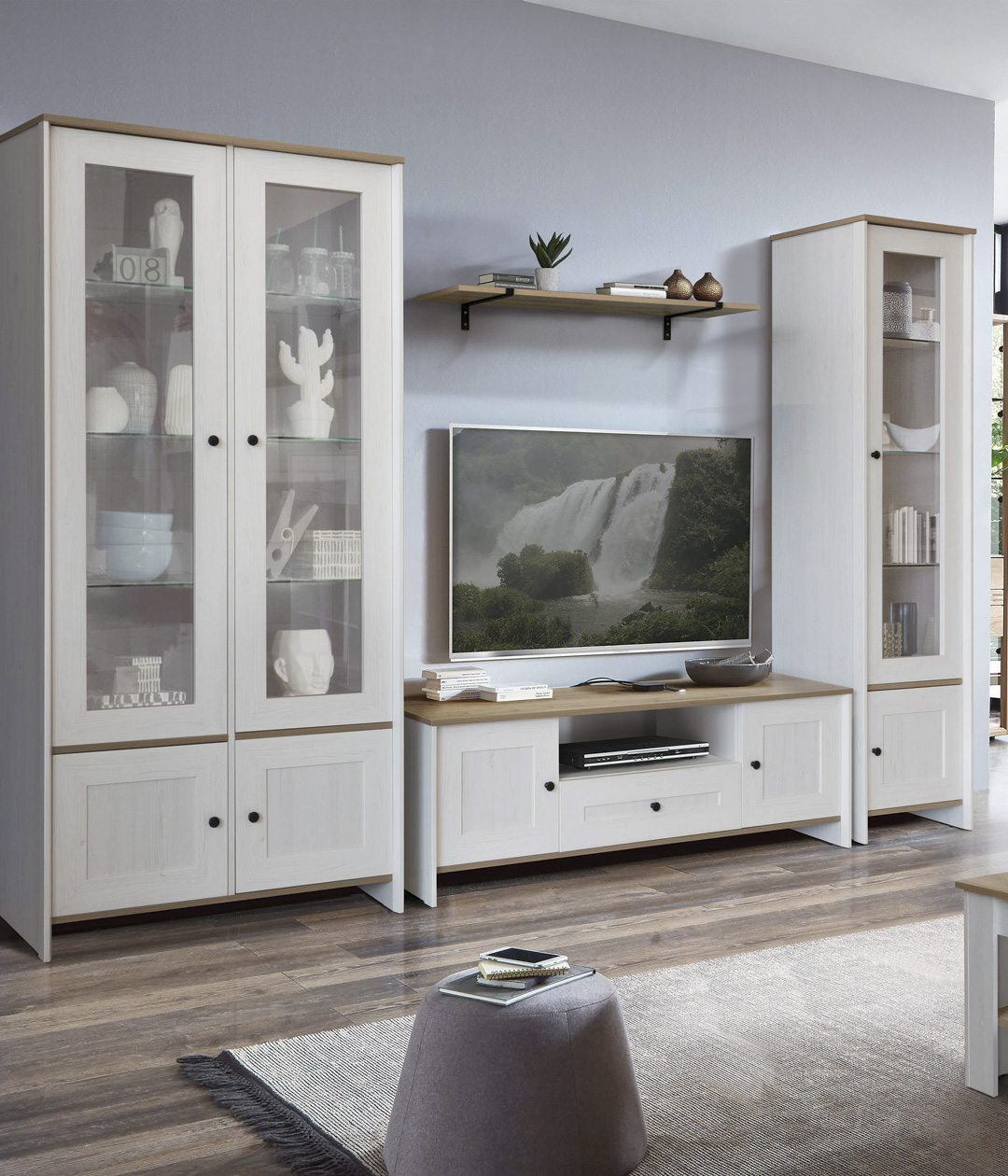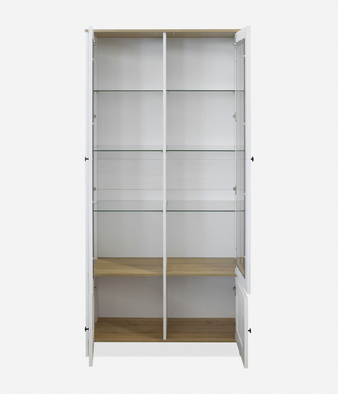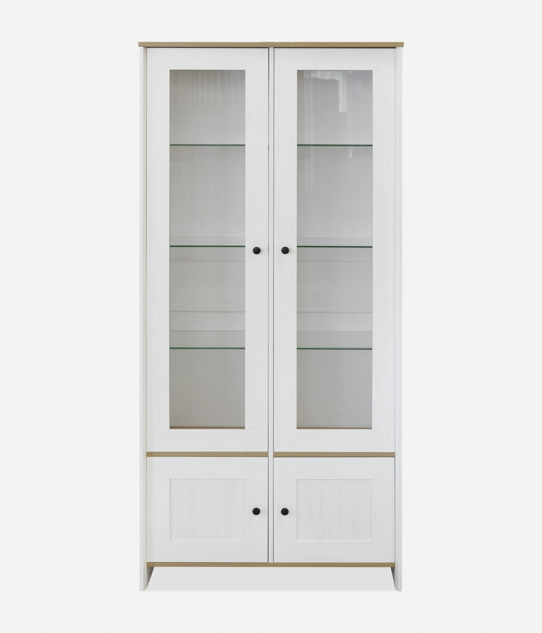 Шкаф-витрина Парма станет функциональным украшением современной гостиной. Дверцы со стеклянными вставками откроют обзор на содержимое, защищая его от пыли и влаги. Высокие опоры облегчат уборку в помещении.