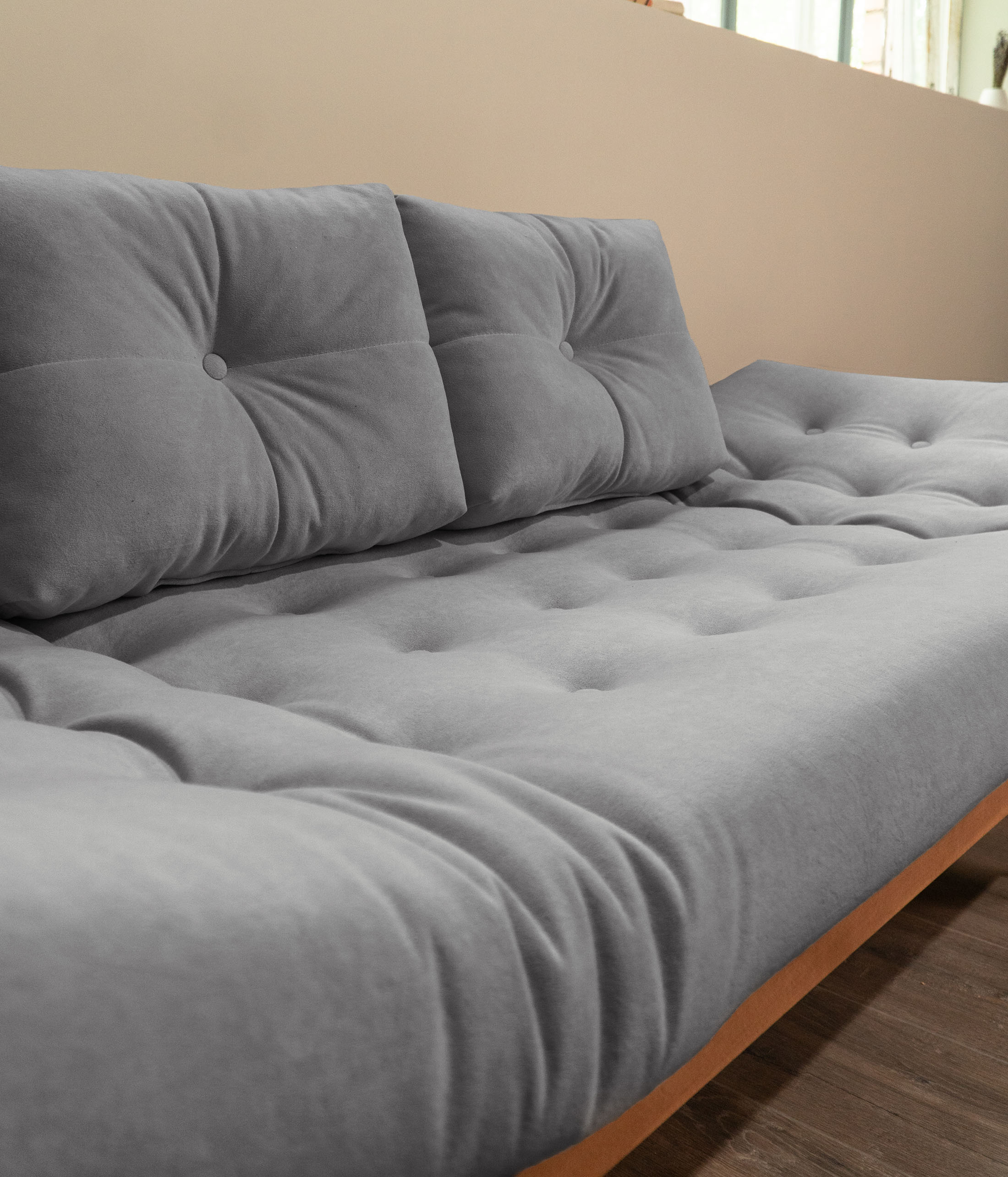 Диван Пауни с деревянным каркасом — надежное и стильное решение для вашего дома. В сложенном виде он компактен, идеально подходит для небольших помещений, а при необходимости легко раскладывается в односпальную кровать, обеспечивая удобное спальное место. Практичная обивка из мягкого велюра не только приятна на ощупь, но и отличается высокой износостойкостью, что делает диван отличным выбором для ежедневного использования.