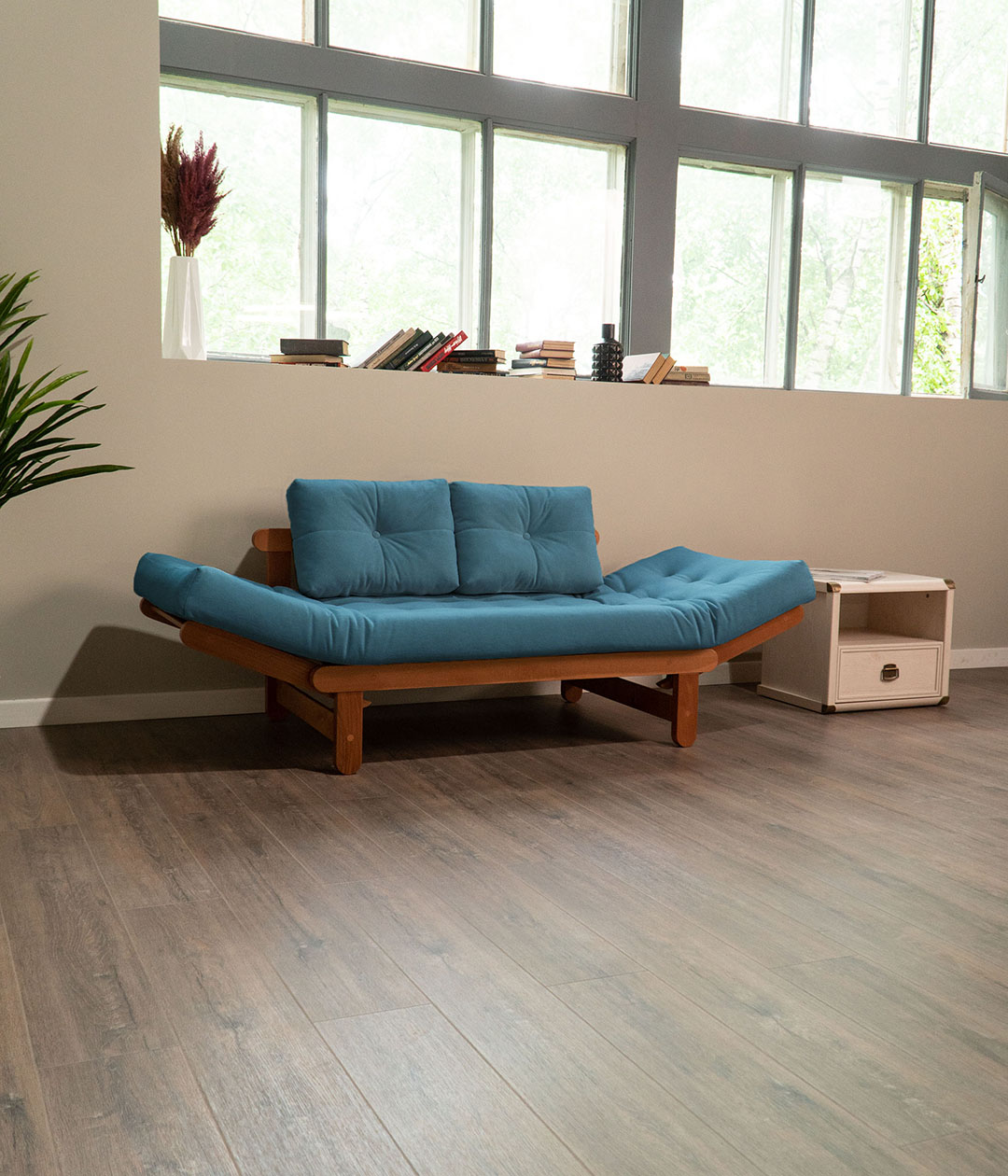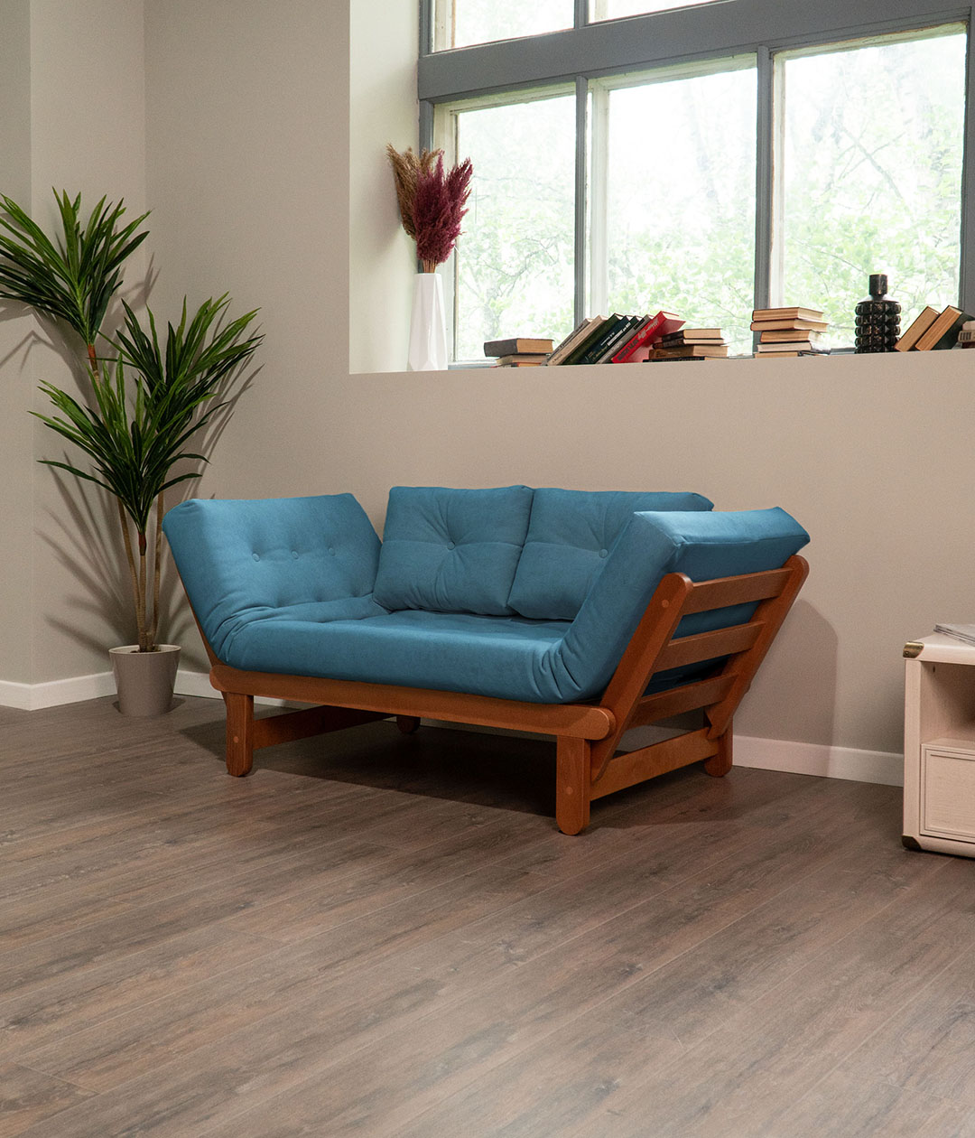 Диван Пауни с деревянным каркасом — надежное и стильное решение для вашего дома. В сложенном виде он компактен, идеально подходит для небольших помещений, а при необходимости легко раскладывается в односпальную кровать, обеспечивая удобное спальное место. Практичная обивка из мягкого велюра не только приятна на ощупь, но и отличается высокой износостойкостью, что делает диван отличным выбором для ежедневного использования.