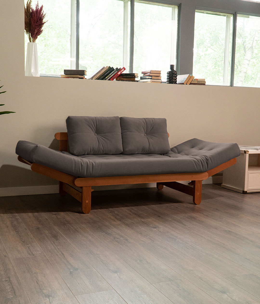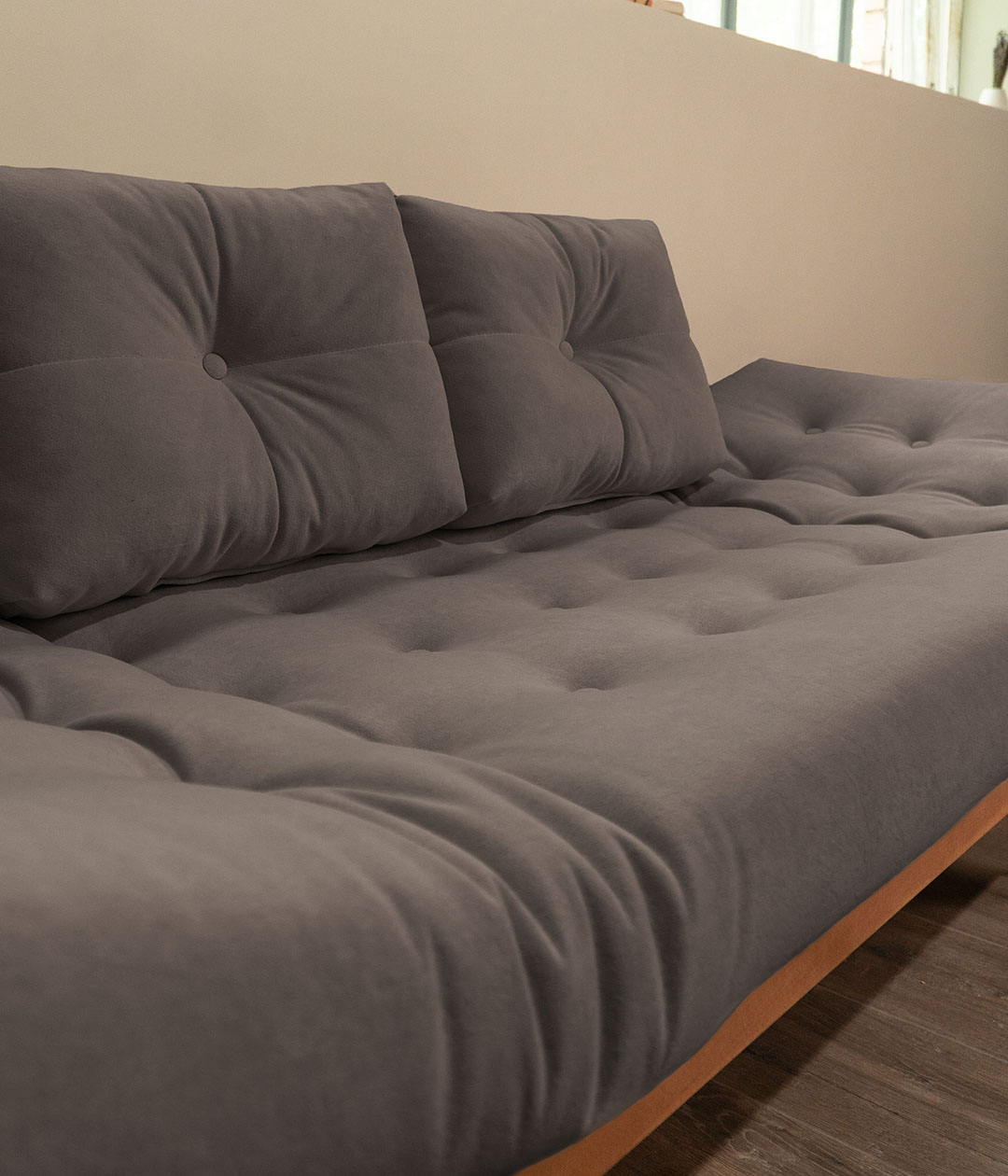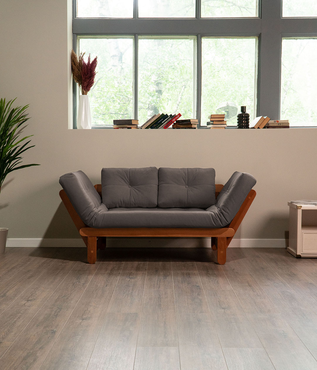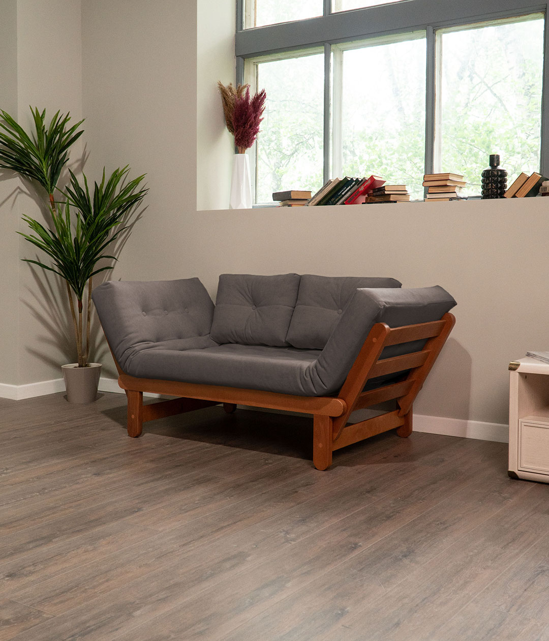 Диван Пауни с деревянным каркасом — надежное и стильное решение для вашего дома. В сложенном виде он компактен, идеально подходит для небольших помещений, а при необходимости легко раскладывается в односпальную кровать, обеспечивая удобное спальное место. Практичная обивка из мягкого велюра не только приятна на ощупь, но и отличается высокой износостойкостью, что делает диван отличным выбором для ежедневного использования.