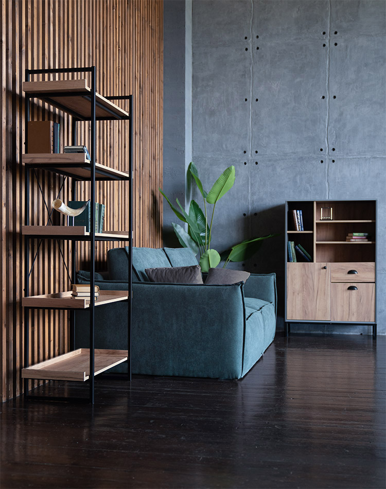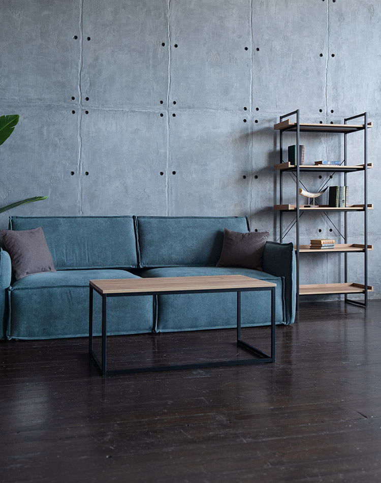 Диван Пеория Лазурный, Журнальный стол Лофт и Стеллаж Лофт