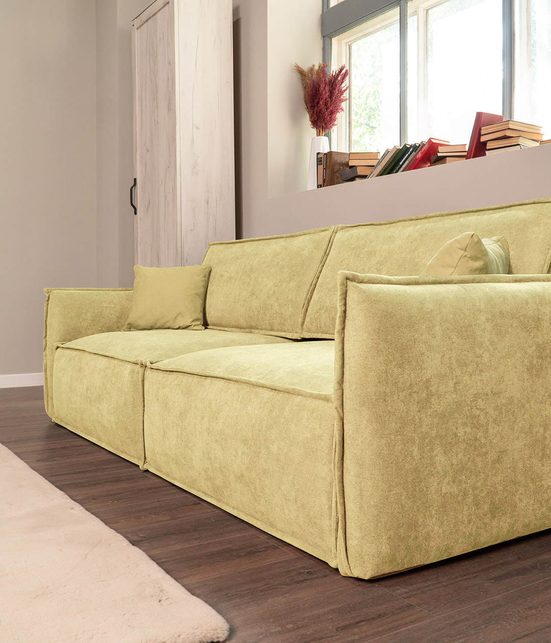 Глубокая, комфортная посадка при малых габаритах. А узкие подлокотники придают дивану утонченный, стильный вид и берегут пространство.