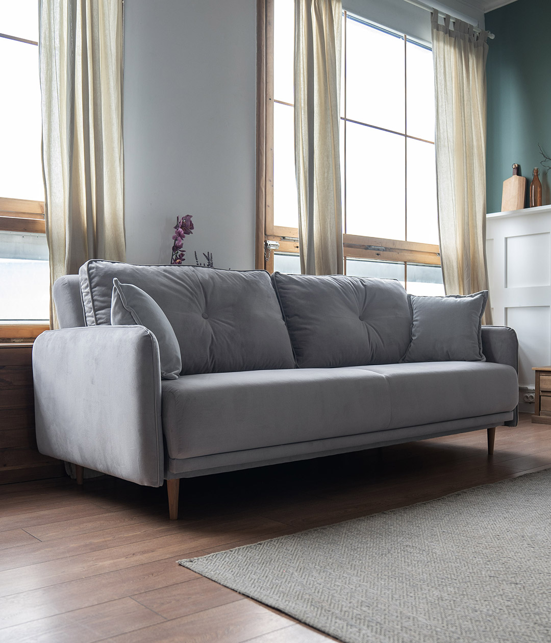 Диван Пирр — это идеальное сочетание стиля и функциональности, создающее комфортное пространство для отдыха. Высокие деревянные ножки и узкие подлокотники, украшенные декоративным кантом, придают ему элегантный и изысканный вид, который станет ярким акцентом в вашем интерьере. Благодаря легкой трансформации в удобное спальное место, диван Пирр не только эстетически привлекателен, но и практичен, что делает его отличным выбором для любого помещения.
