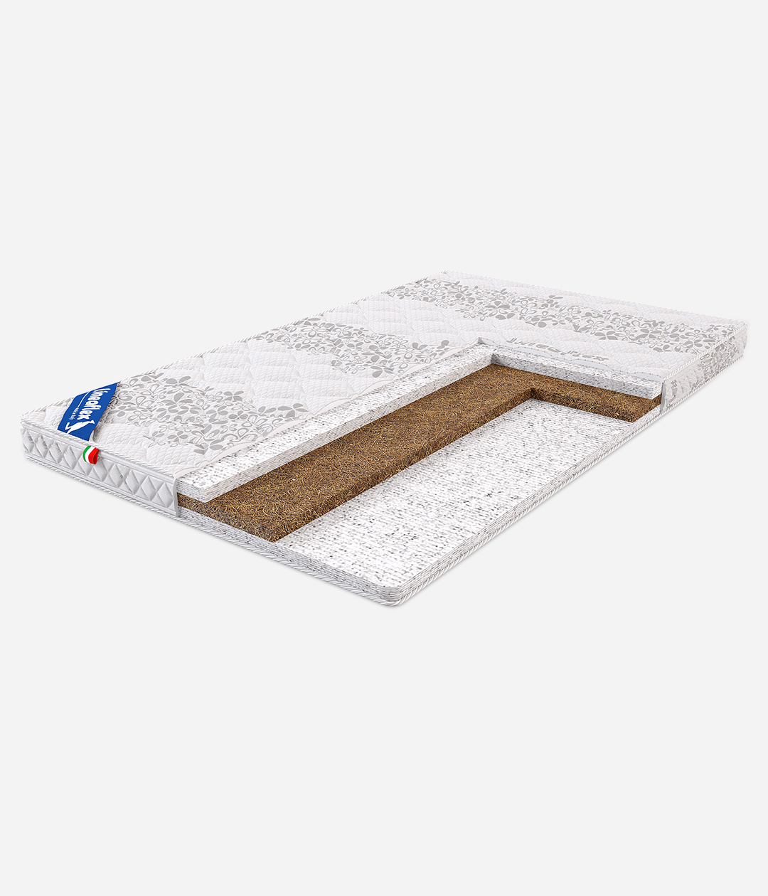 Прочное кокосовое волокно пропитано натуральным латексом, чтобы получить требуемую упругость и устойчивость к нагрузкам. Слои кокоса увеличивают жесткость матраса. К тому же, материал обладает уникальным сочетанием свойств: влагостойкость, воздухопроницаемость и гипоаллергенность.