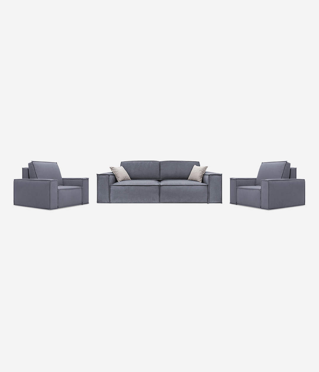 Прямой диван Бостон и два кресла Бруклин Дымчато-серый шенилл Lounge