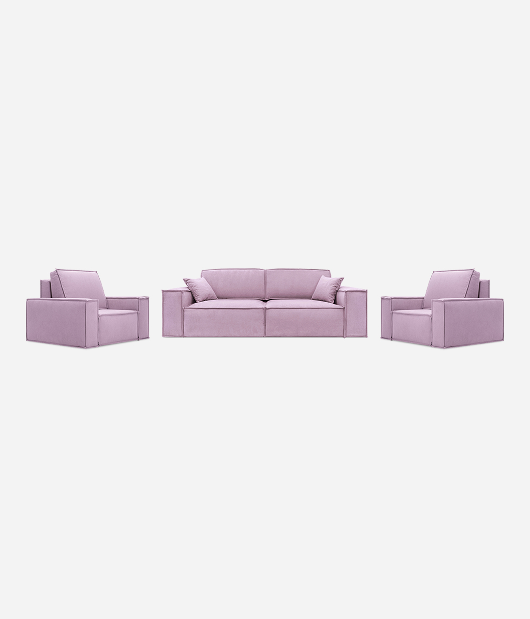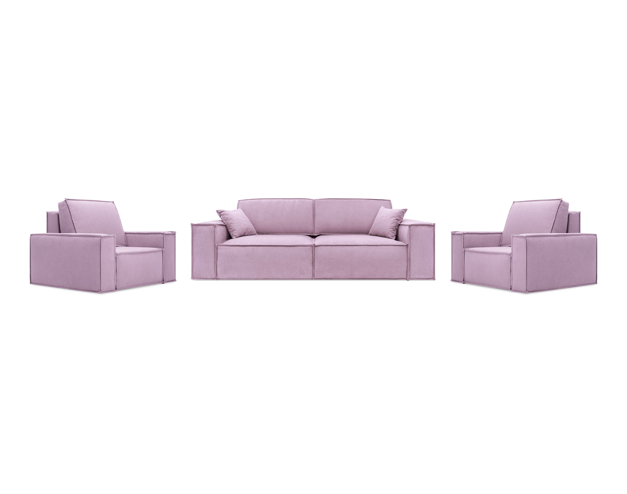 Прямой диван Бостон и два кресла Бруклин Шенилл Lounge цвета фламинго