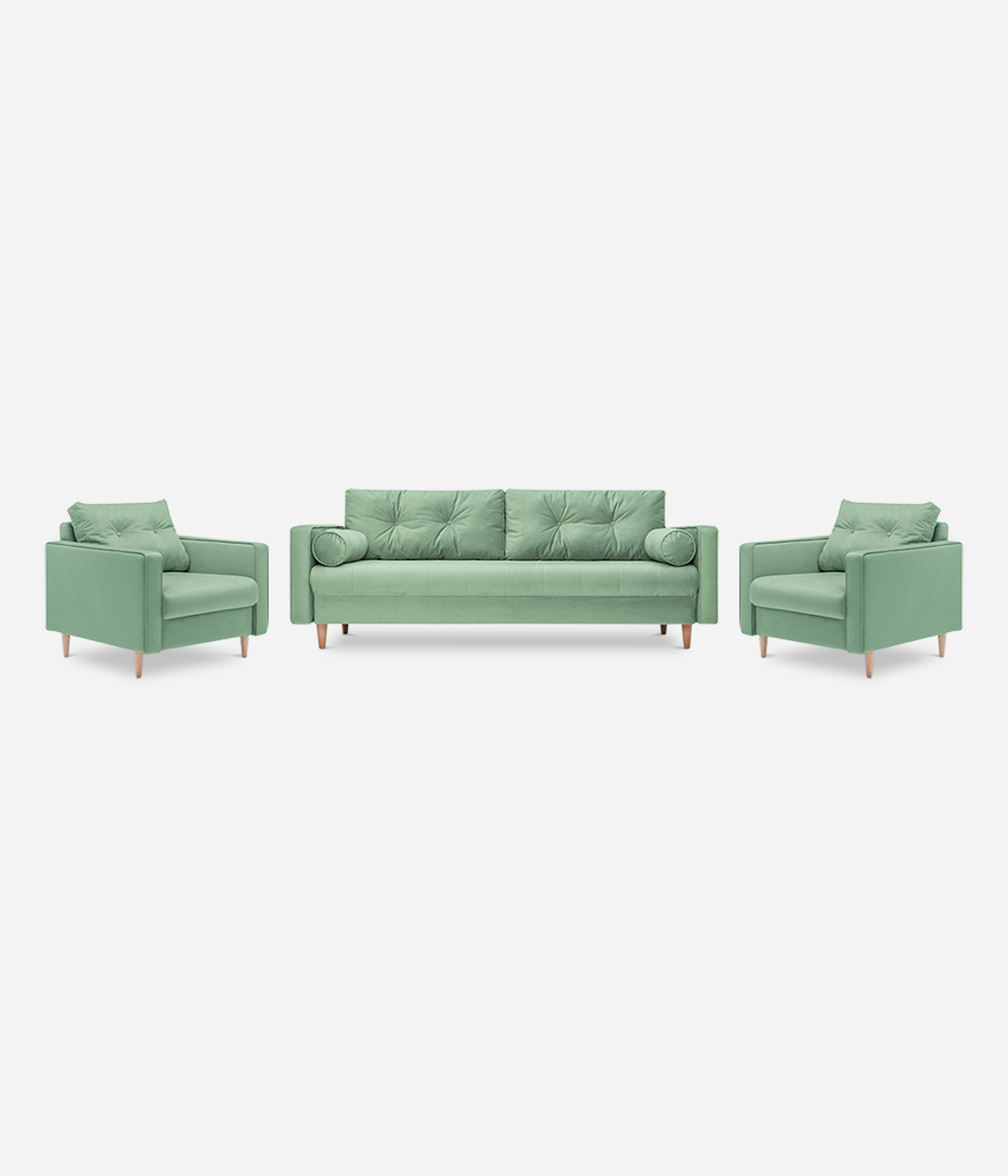 Прямой диван Крейт и два кресла Крейт мятный велюр Triniti