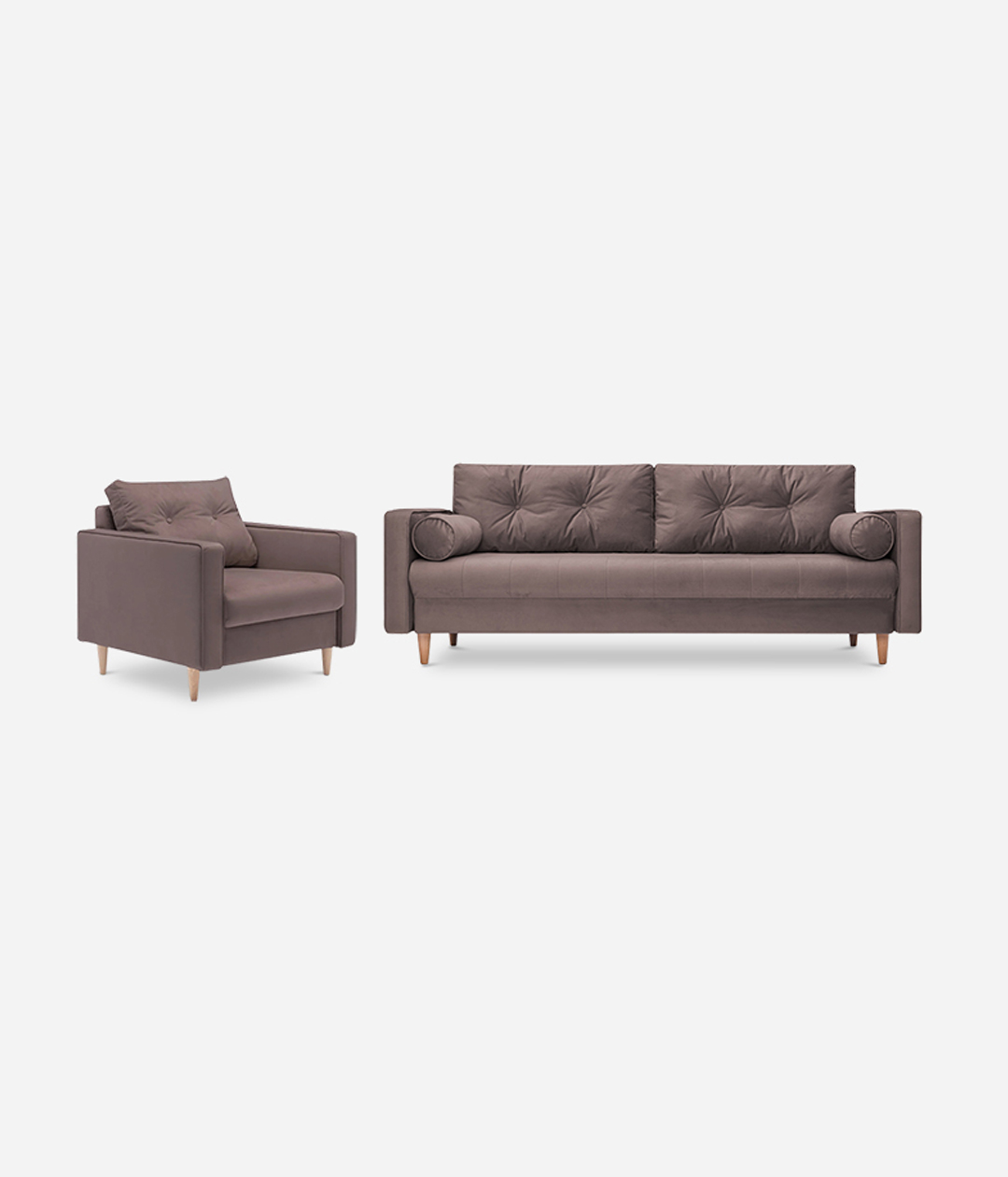 Прямой диван Крейт и кресло Крейт Велюр Triniti цвета какао