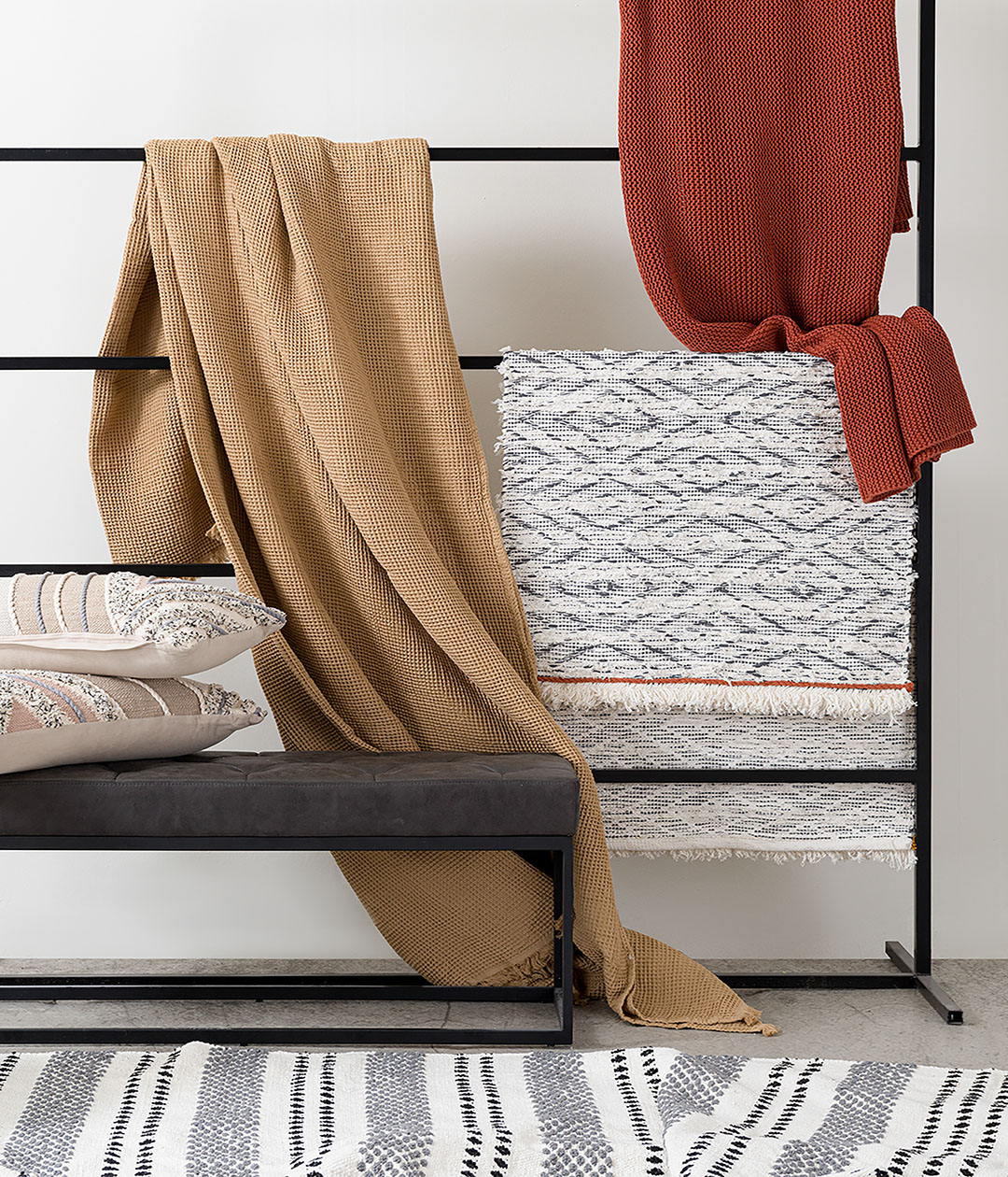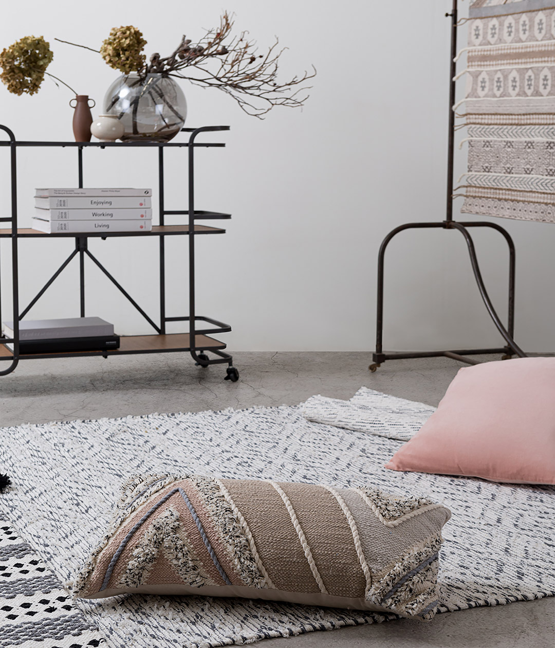 Ковер из хлопка Pune из коллекции Ethnic с линейным серым орнаментом и бахромой дополнит современный интерьер. Он добавит уюта и станет акцентом в помещениях в стилях минимализм, сканди и бохо. Практичная модель из хлопка будет особенно уместна на полу в гостиной или в спальне.