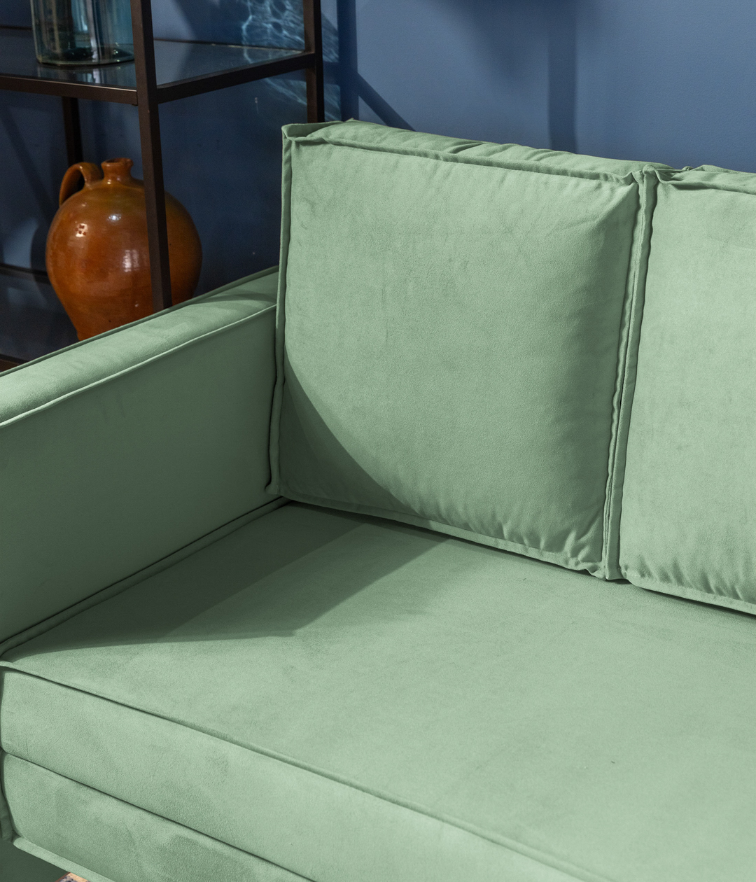 Диван Рино станет стильным акцентом вашего интерьера. Его приятная велюровая обивка не только радует глаз, но и проста в уходе. Четкие формы дивана подчеркиваются изысканным декором в виде вывернутых швов, что добавляет ему уникальности, а наличие спального места делает этот диван но только комфортным, но и функциональным предметом интерьера.