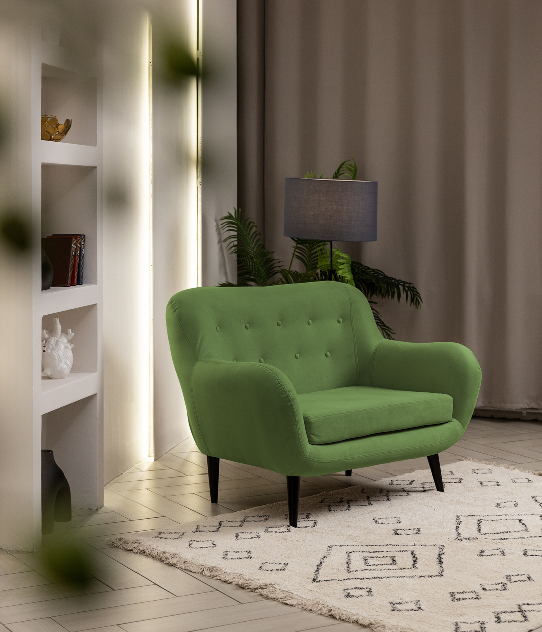 Стильный и компактный диван Роли в скандинавском стиле станет украшением любого интерьера. Высокие ножки добавляют конструкции легкости, а утяжки на спинке придают современный акцент. Удобная посадка обеспечивает комфортный отдых, а практичная ткань устойчива к износу, что делает этот диван отличным выбором для повседневного использования. Диван Роли - идеальное сочетание эстетики и функциональности для вашего дома.