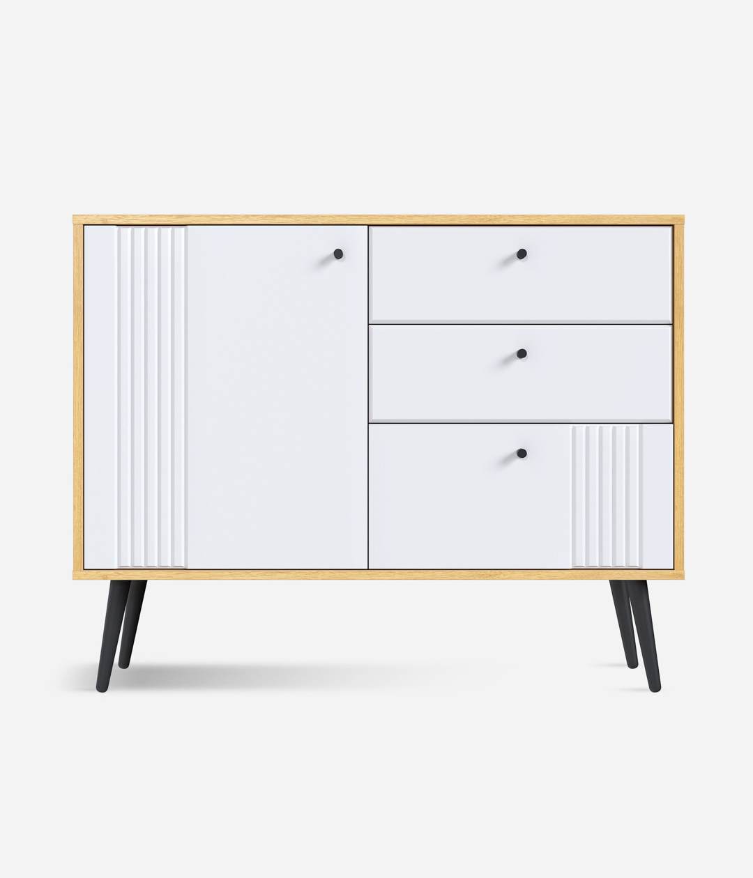 Комод на высоких ножках Саксония многофункционален и практичен, подойдет для использования в качестве тумбы под телевизор в гостиной или спальне, а также для хранения вещей.