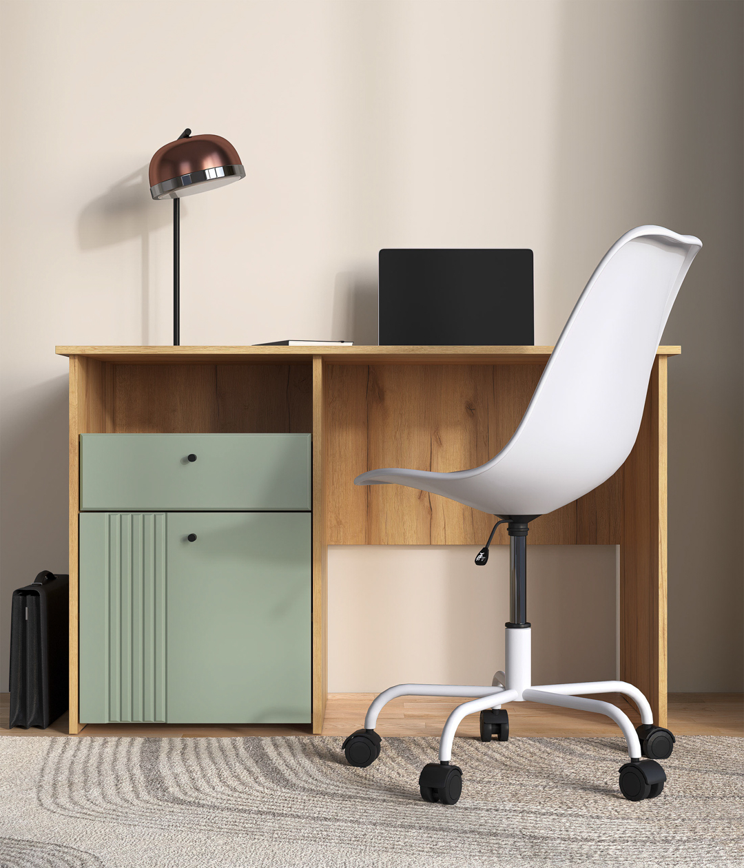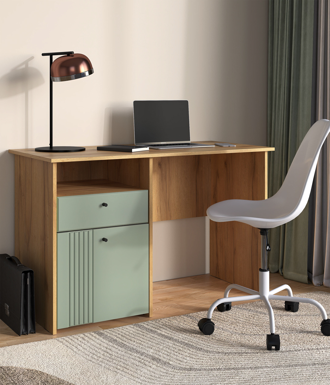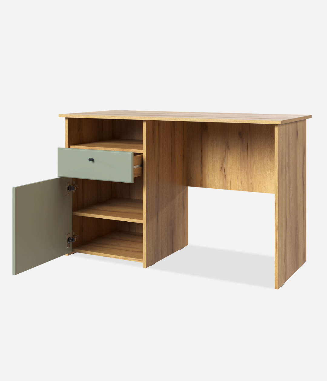 Компактный письменный стол «Саксония» создан для небольшого пространства. Можно разместить ноутбук, канцелярские принадлежности, книги и мелкий декор. Модель оснащена ящиком, нишей и закрытым отделением для хранения различных вещей.