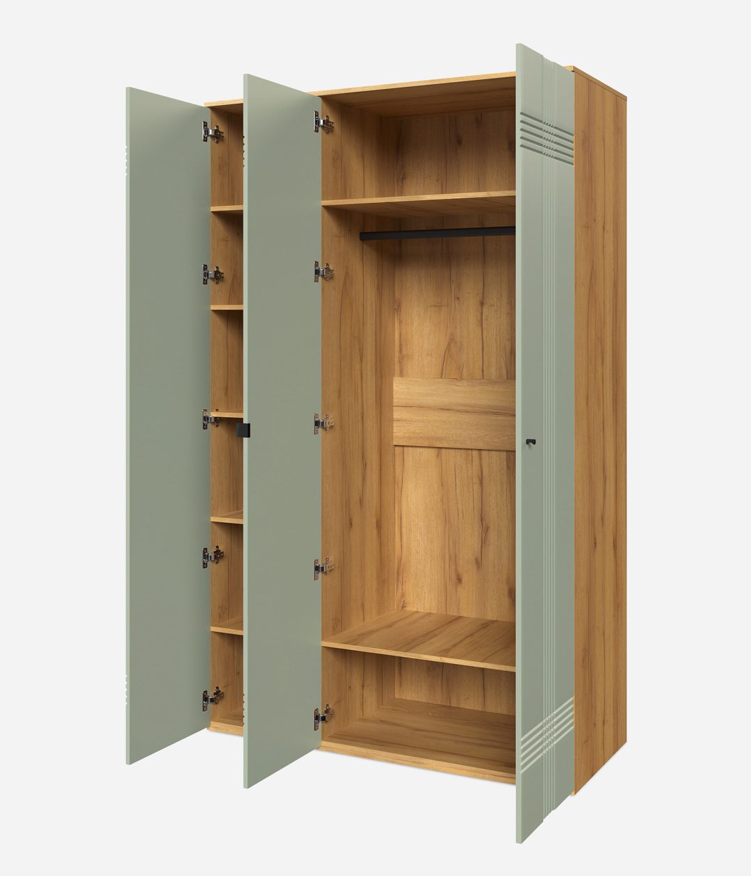 Шкаф 3-створчатый Саксония выполнен в современном стиле, сочетая в себе функциональность и эстетику. Установка шкафа напольная, что обеспечивает устойчивость и надежность конструкции. Полезная глубина шкафа составляет 57 см, что делает его вместительным и функциональным.