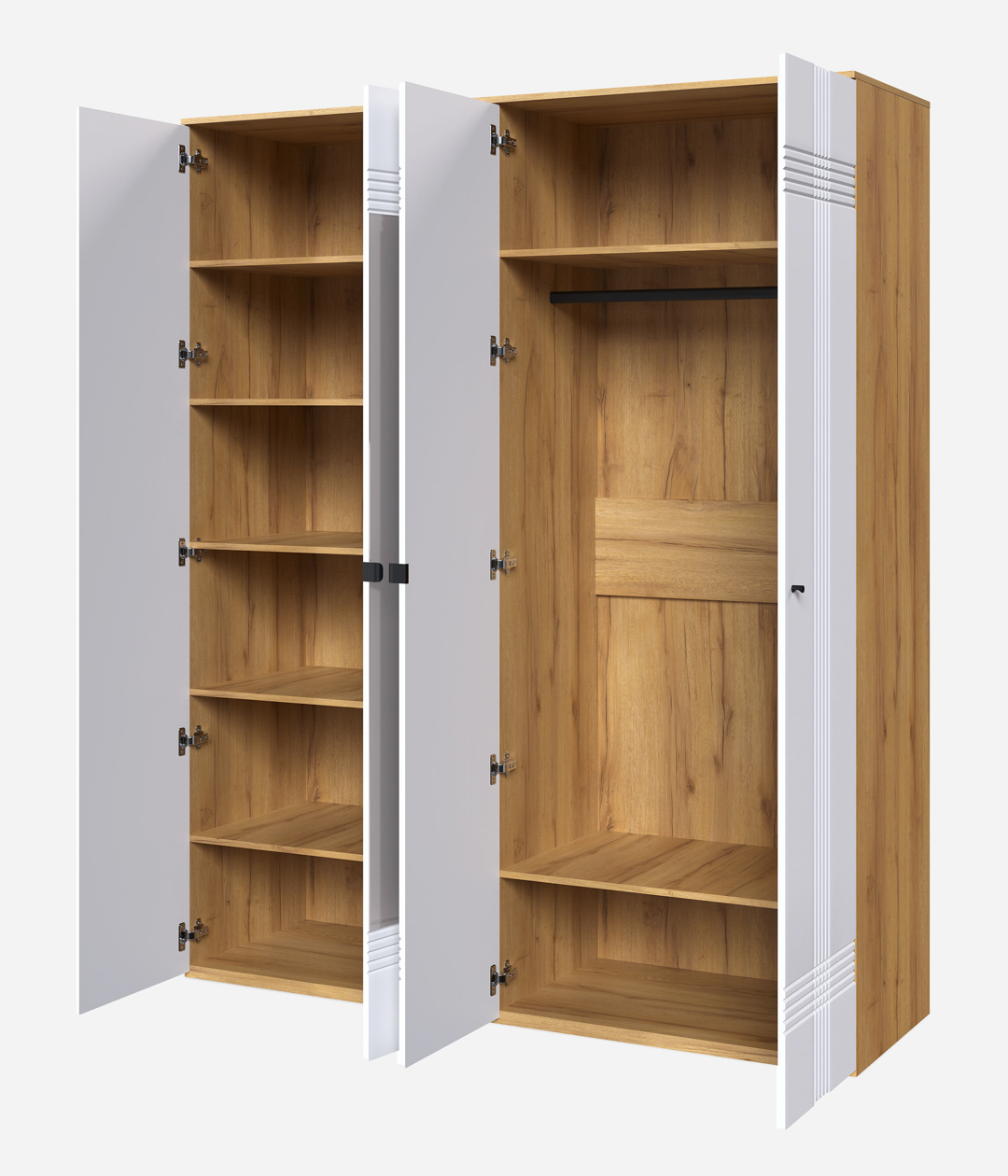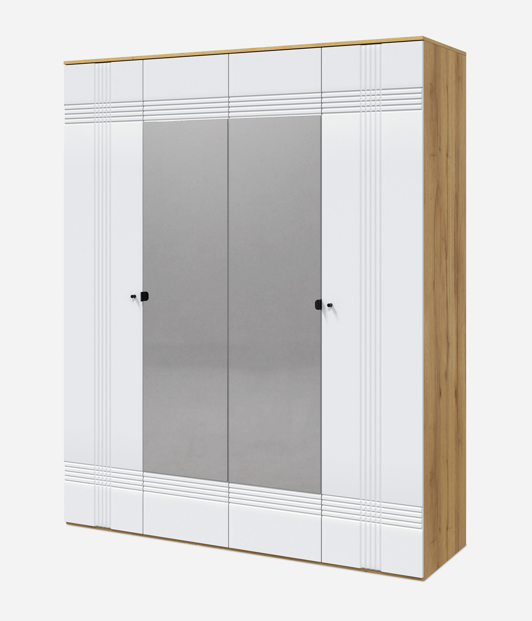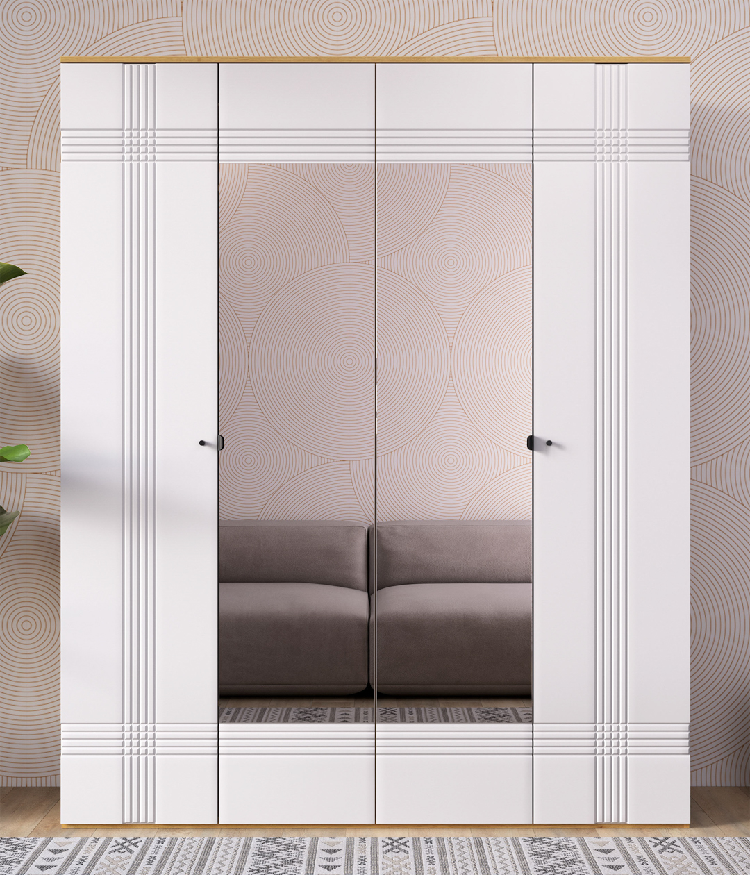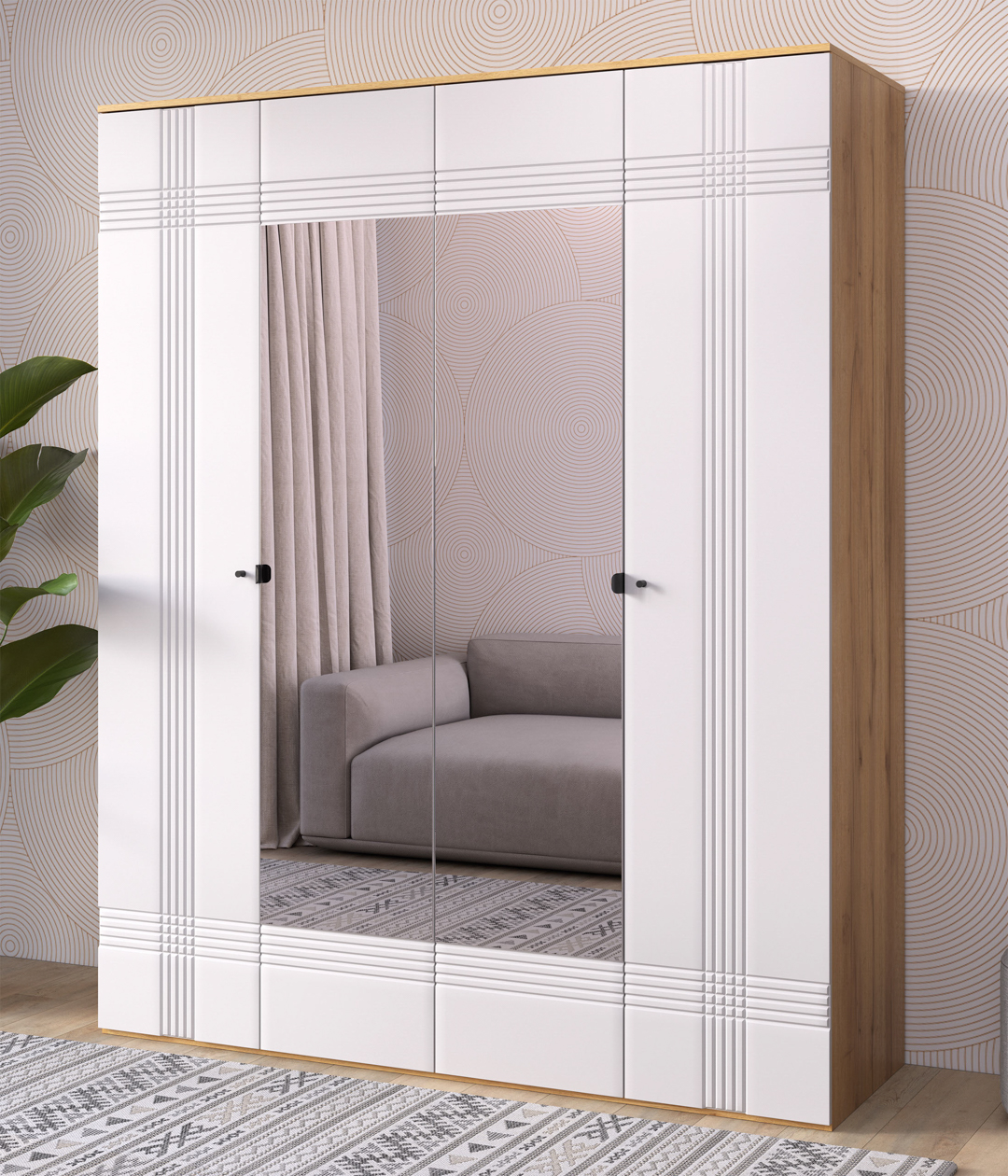 Шкаф 4-створчатый Саксония выполнен в современном стиле, сочетая в себе функциональность и эстетику. Установка шкафа напольная, что обеспечивает устойчивость и надежность конструкции. Полезная глубина шкафа составляет 57 см, что делает его вместительным и функциональным.