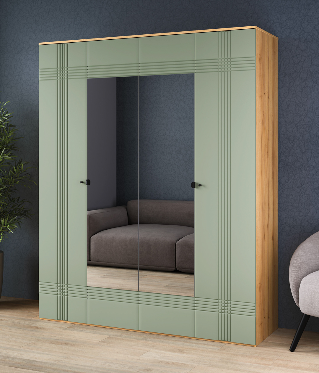 Шкаф 4-створчатый Саксония выполнен в современном стиле, сочетая в себе функциональность и эстетику. Установка шкафа напольная, что обеспечивает устойчивость и надежность конструкции. Полезная глубина шкафа составляет 57 см, что делает его вместительным и функциональным.