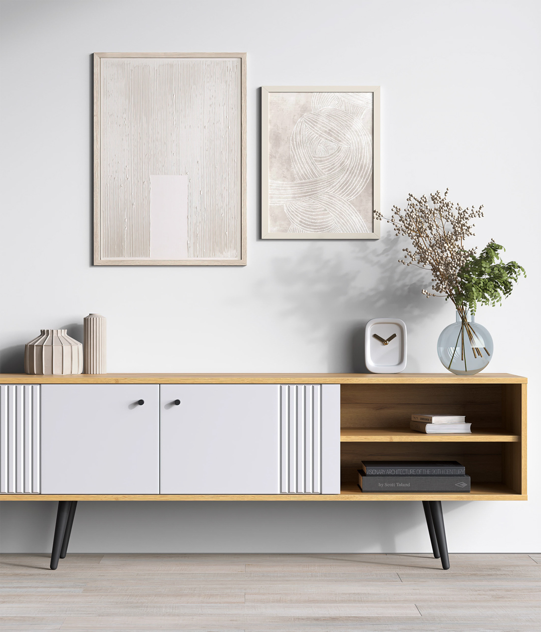 Тумба «Саксония» выполнена в спокойных тонах в сочетании с элементами из дерева, миниатюрными ручками и ножками. Оригинальный дизайн, в котором отсутствуют стандартные и скучные решения, придаст интерьеру гостиной уютный вид, где тумба с установленным на неё телевизором станет центром мебельной композиции.