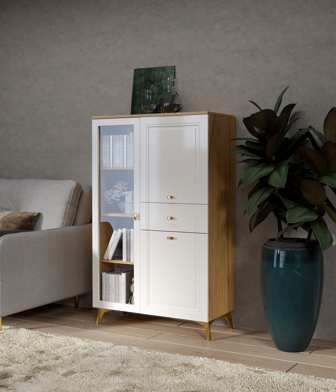 Шкаф-витрина Кураж Вега Сапфир выполнен в современном стиле, который гармонично впишется в интерьер гостиной, детской комнаты или спальни. Функциональный и надежный элемент интерьера, который станет украшением вашей комнаты и обеспечит удобное хранение вещей.