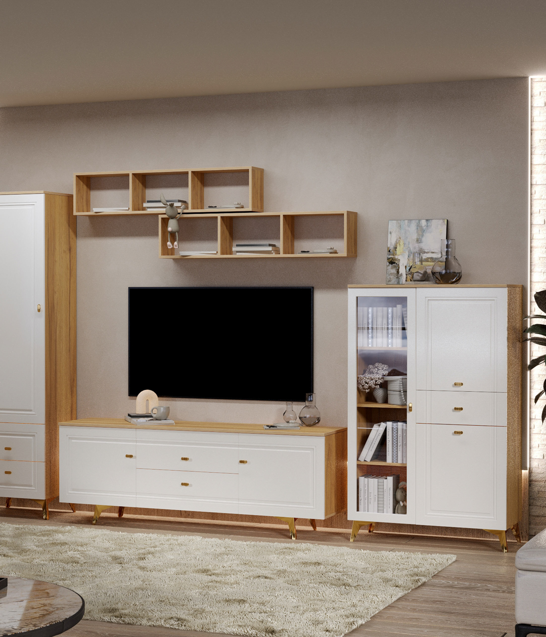 Сапфир 15 Дуб золотистый / Белый глянец