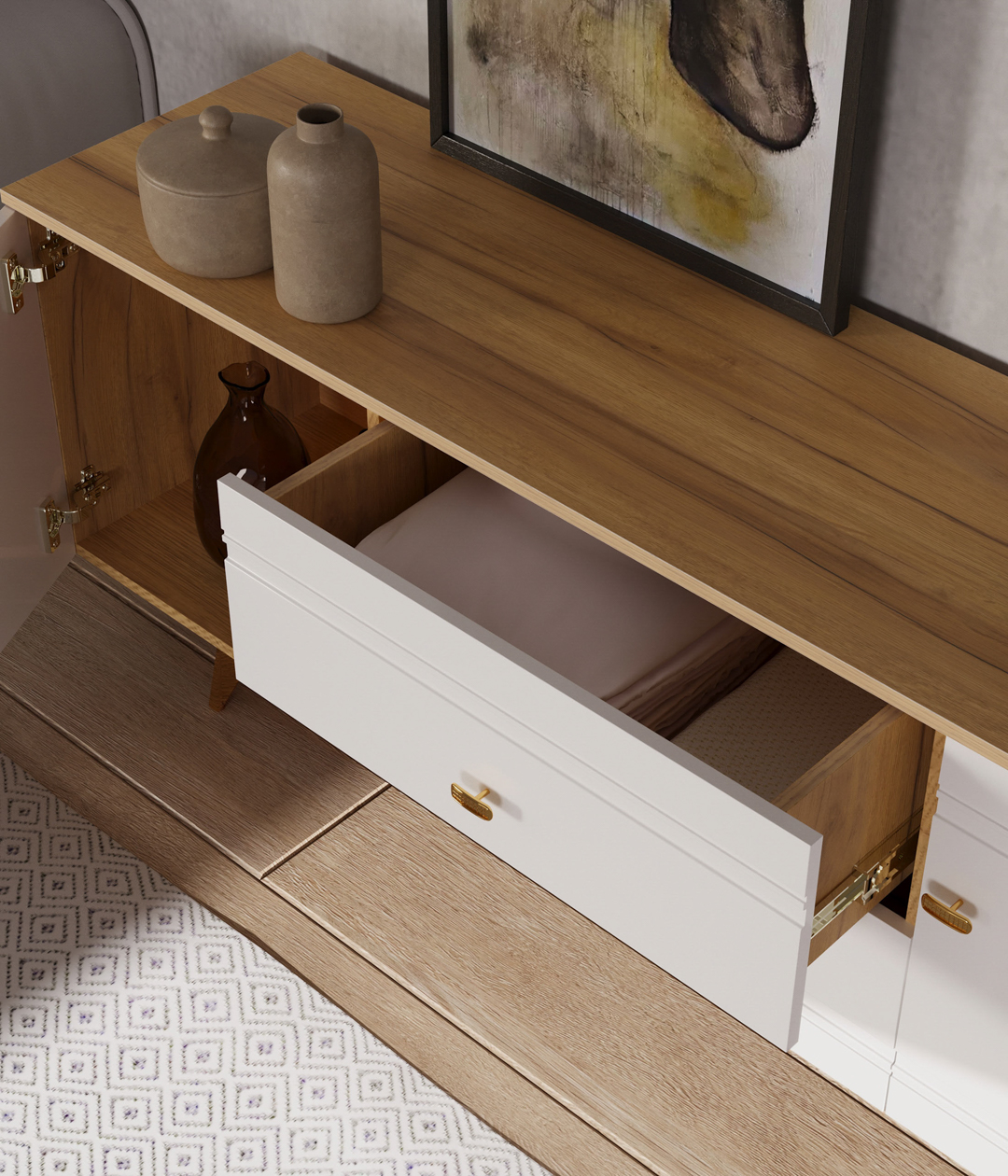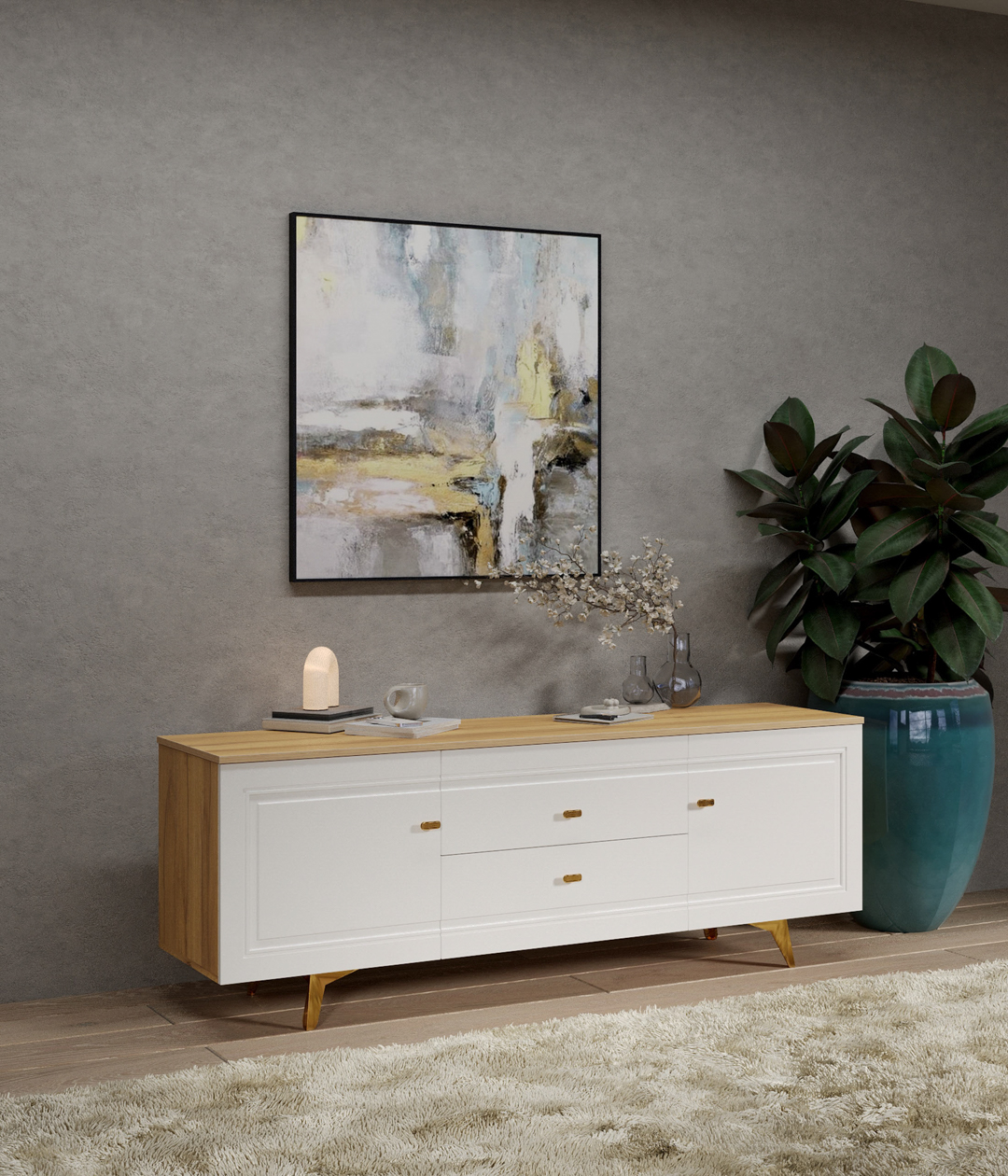 ТВ-тумба Вега Сапфир позволит разместить аудио- и видеотехнику, а также поможет поддерживать порядок среди сопутствующих аксессуаров. Комбинированное наполнение с полками и выдвижными ящиками создает удобную систему хранения. Элегантный дизайн модели украсит интерьер гостиной.
